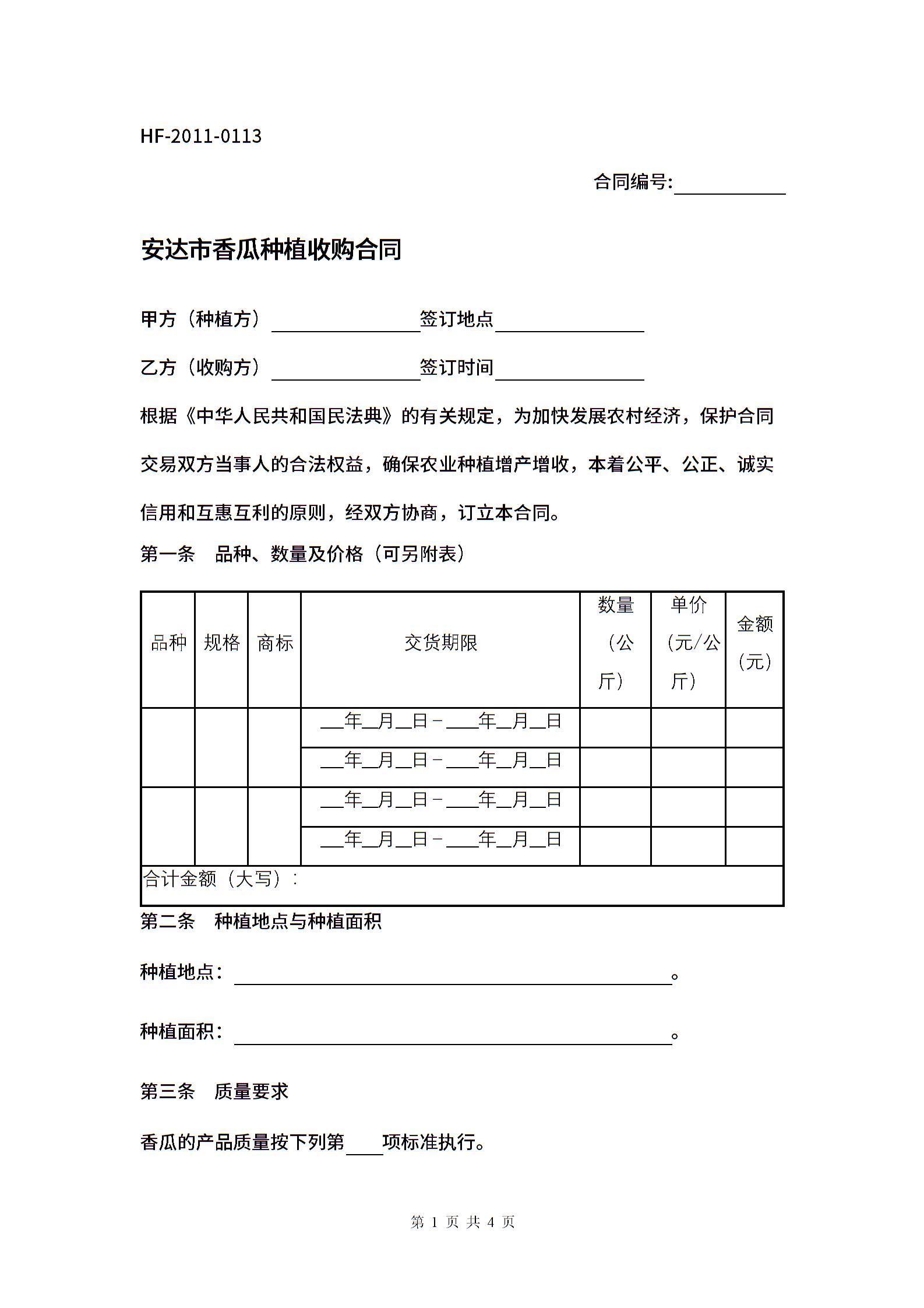 安达市香瓜种植收购合同.docx
