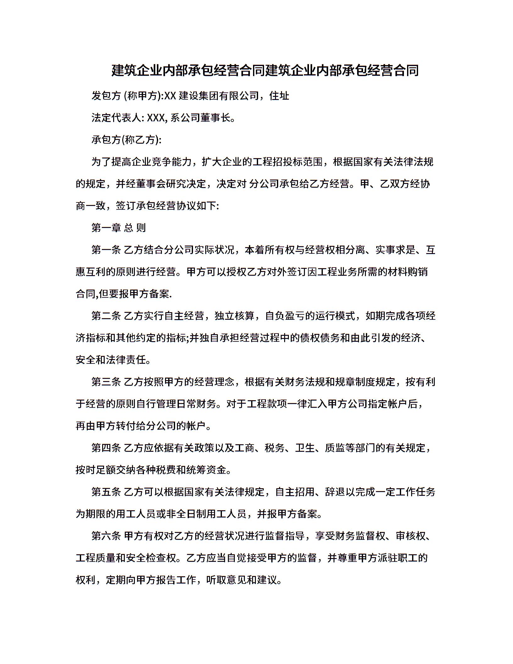 建筑企业内部承包经营合同建筑企业内部承包经营合同.doc