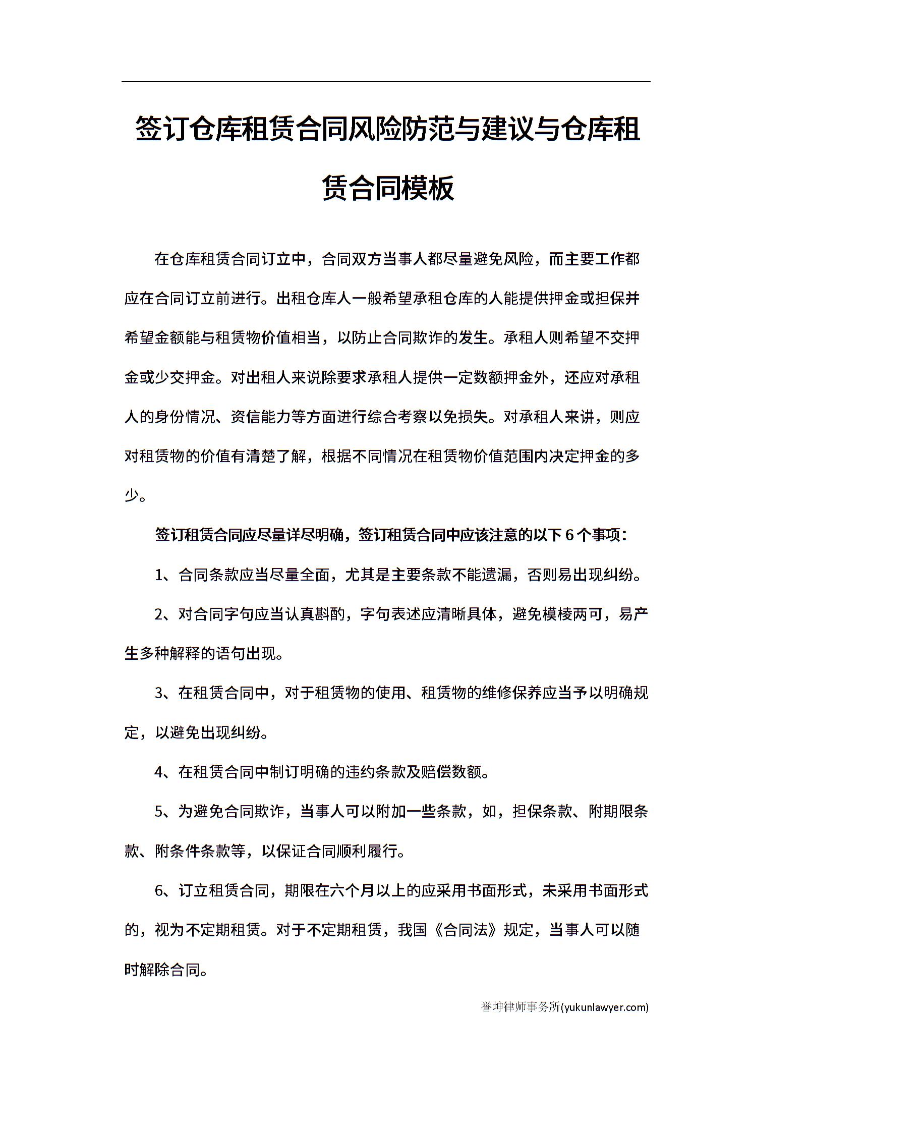签订仓库租赁合同风险防范与建议与仓库租赁合同模板.docx