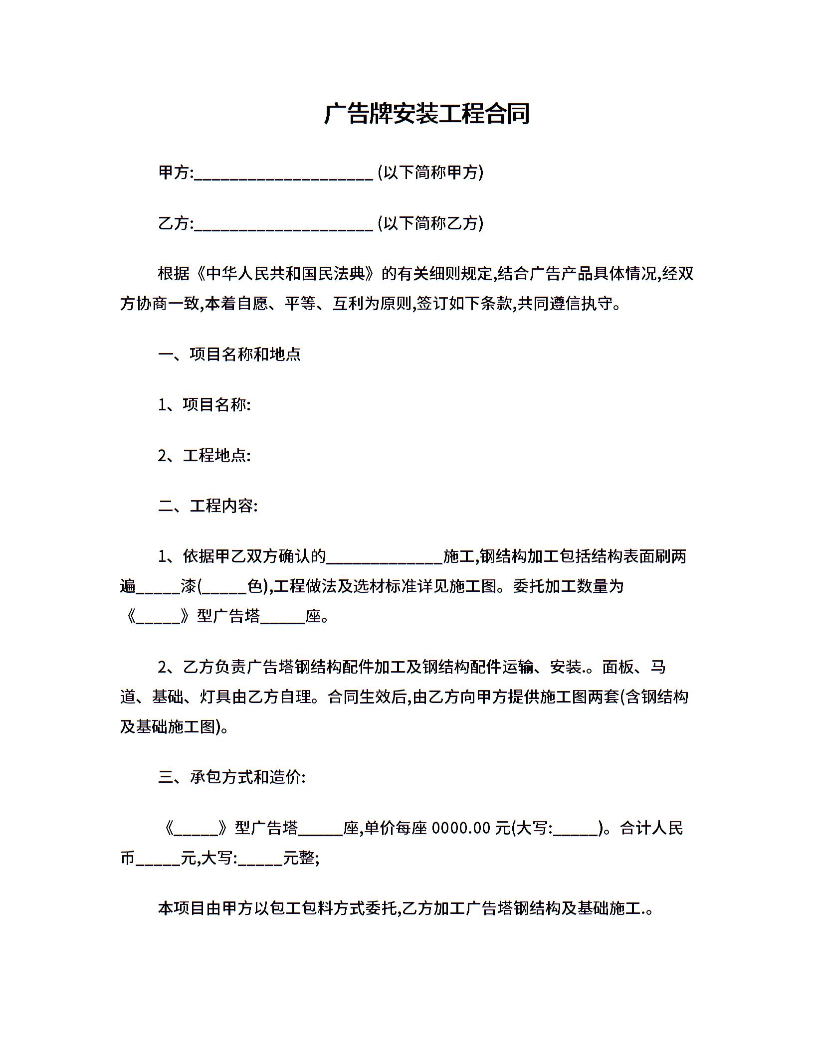 广告牌安装工程合同.doc