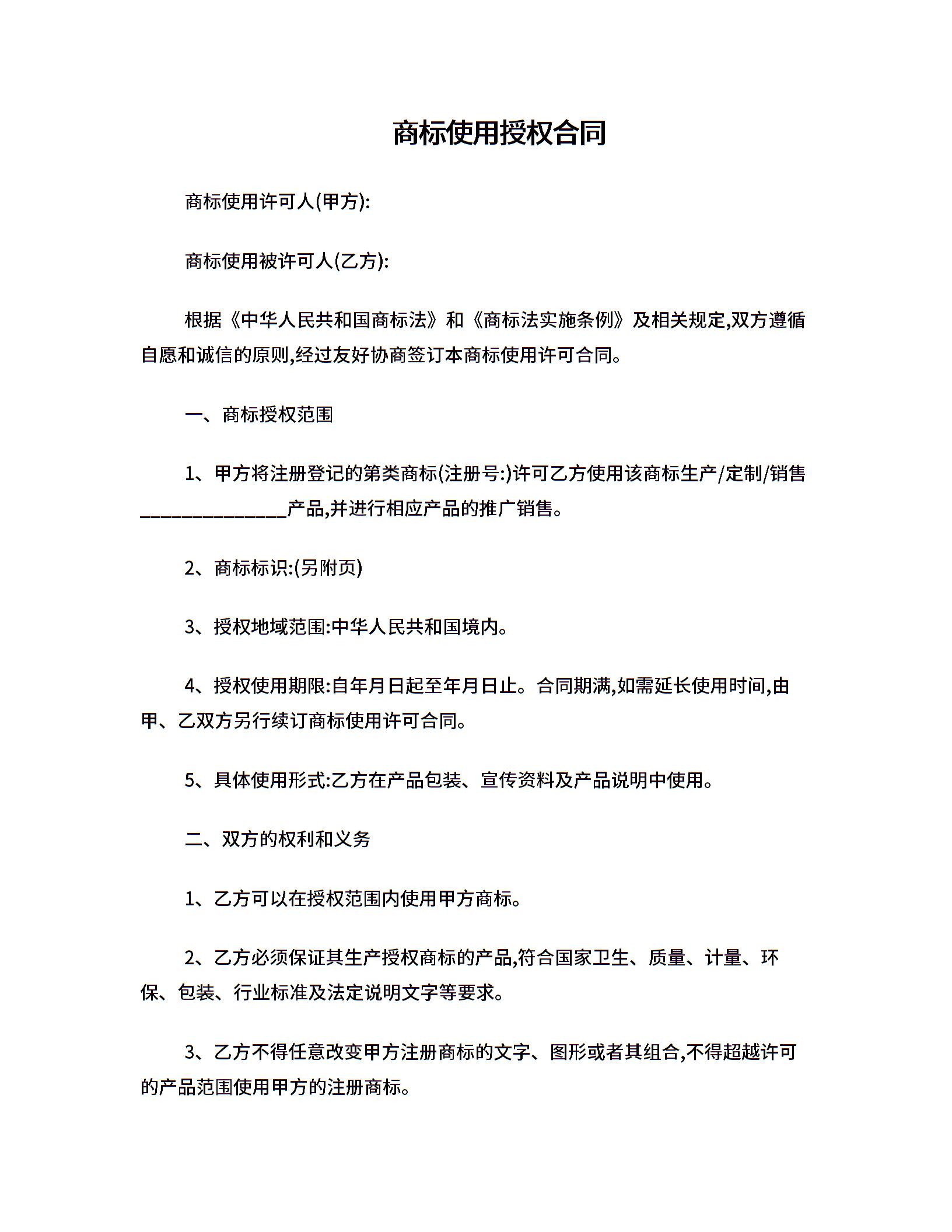 商标使用授权合同.doc