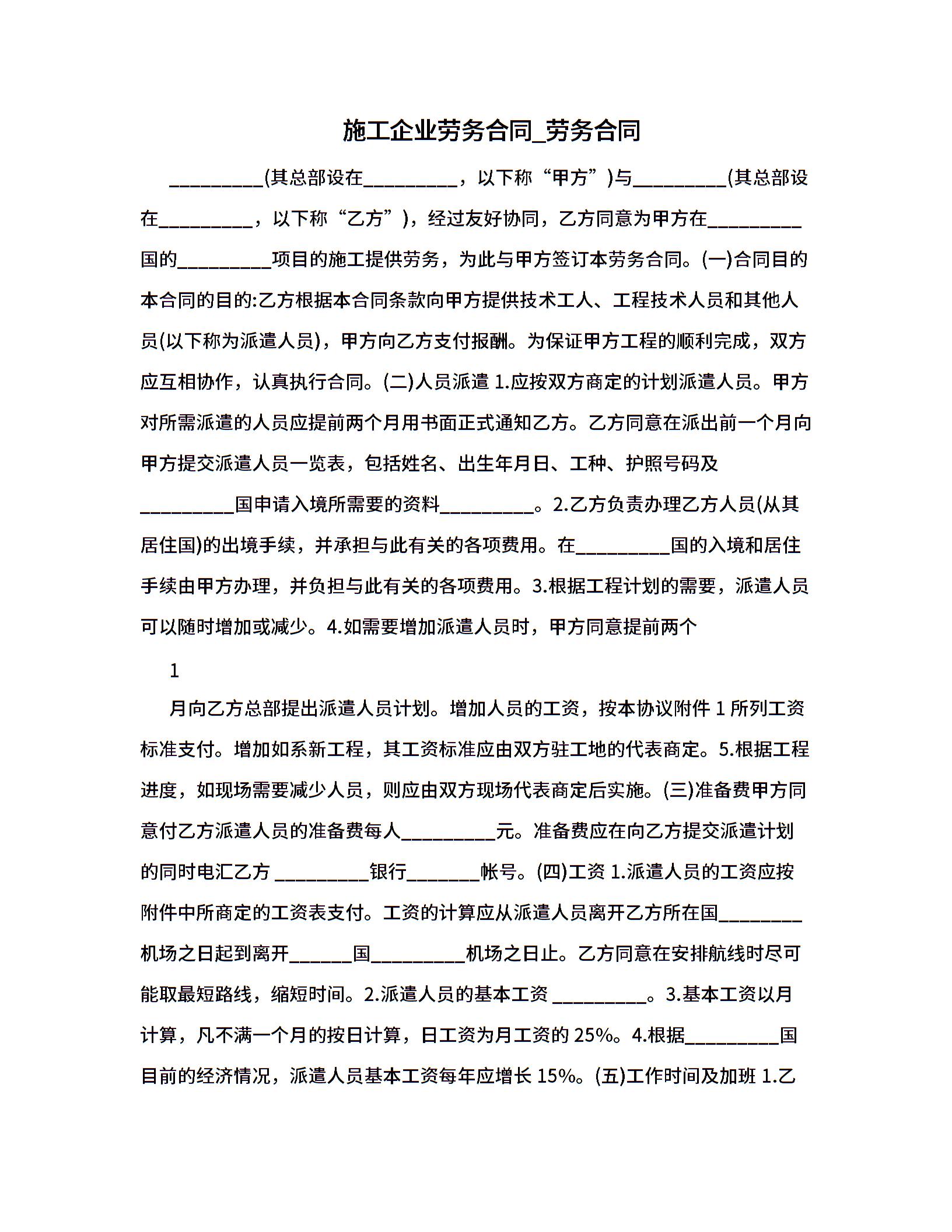 施工企业劳务合同_劳务合同.doc