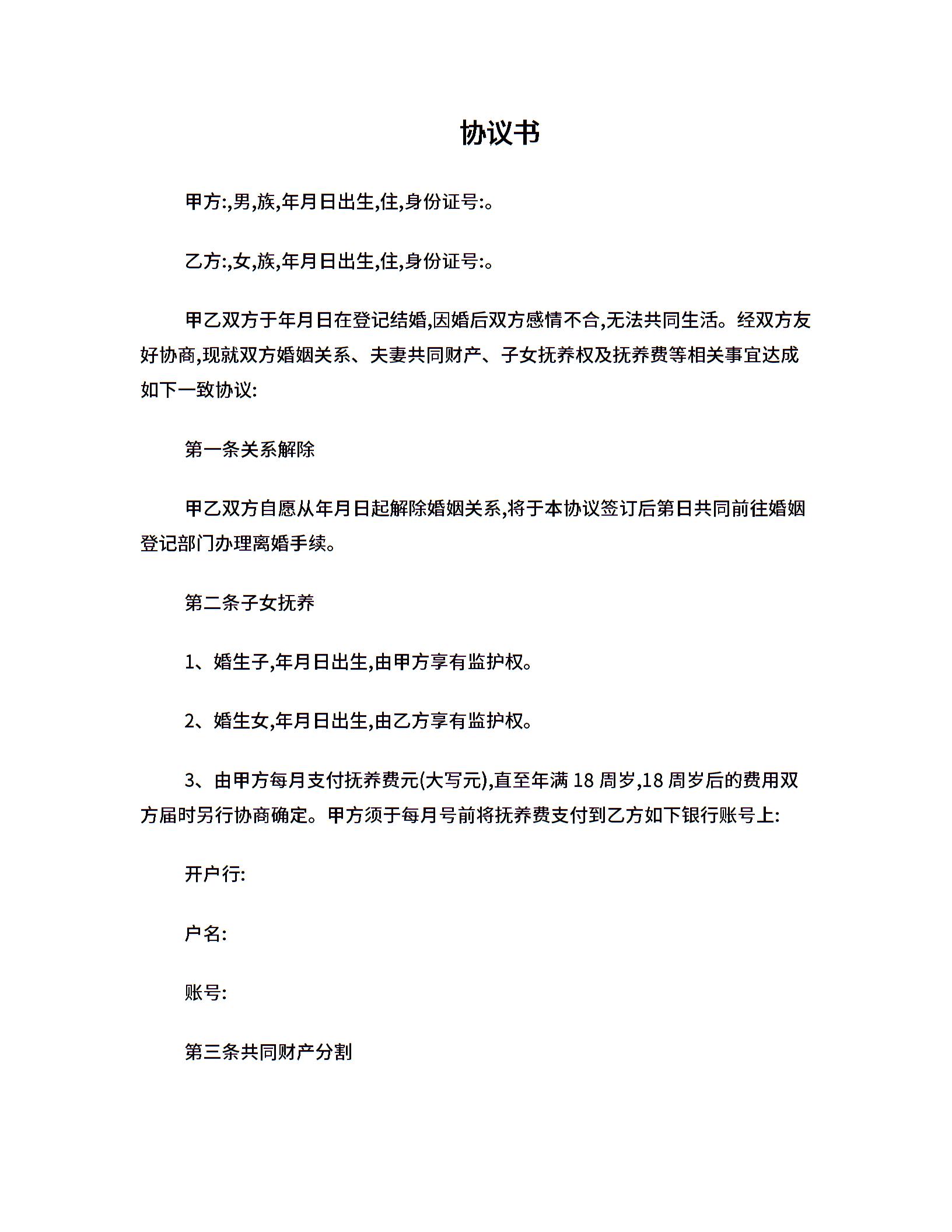当前位置:量子办公 > 合同模板 > 离婚协议 >