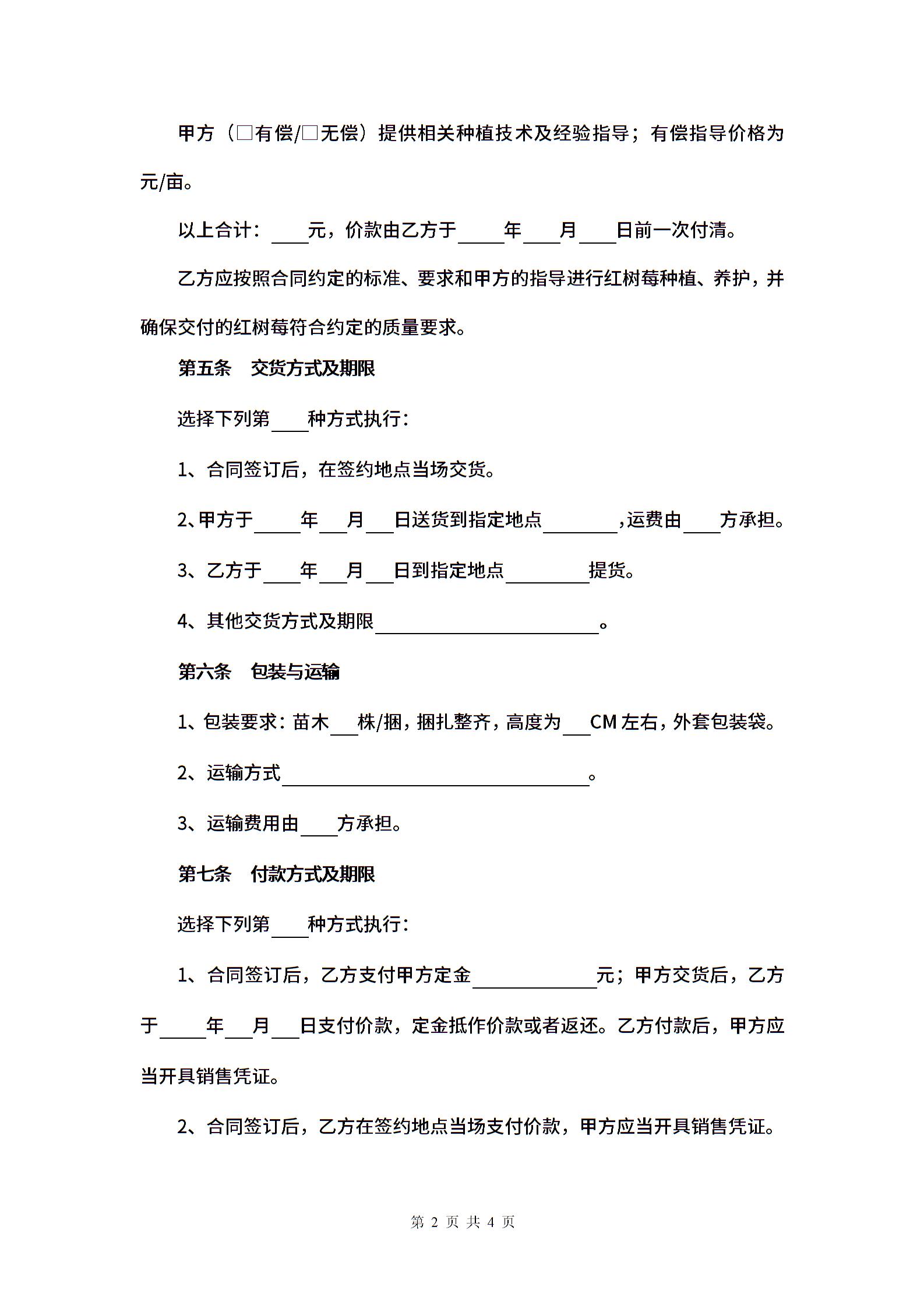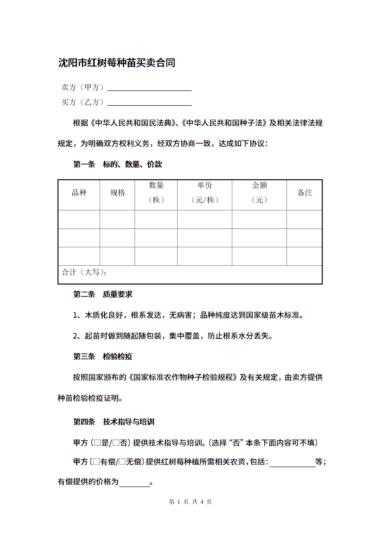 沈阳市红树莓种苗买卖合同.docx