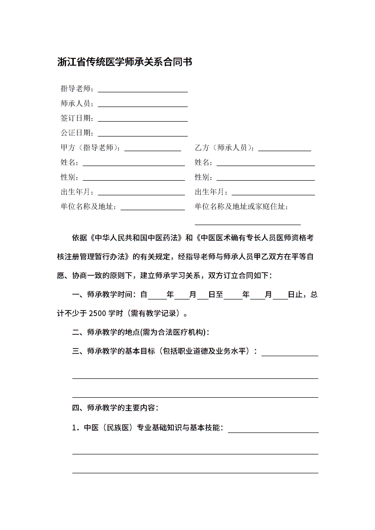 浙江省传统医学师承关系合同书.docx