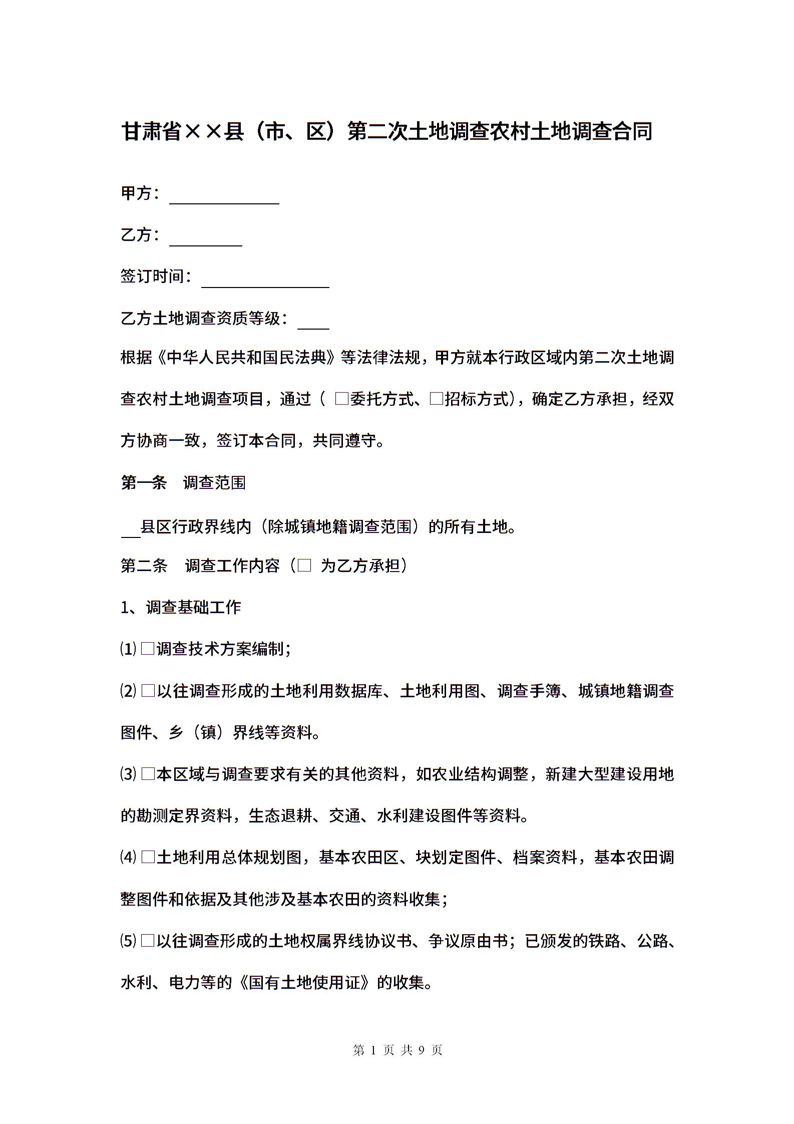 甘肃省××县(市、区)第二次土地调查农村土地调查合同.docx