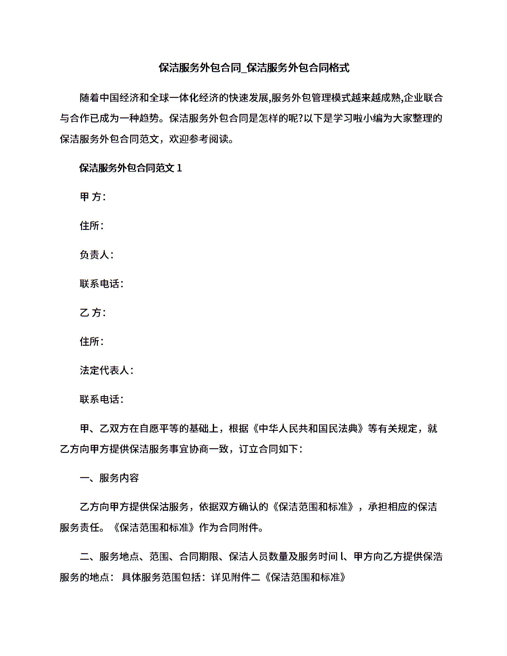 保洁服务外包合同_保洁服务外包合同格式.docx