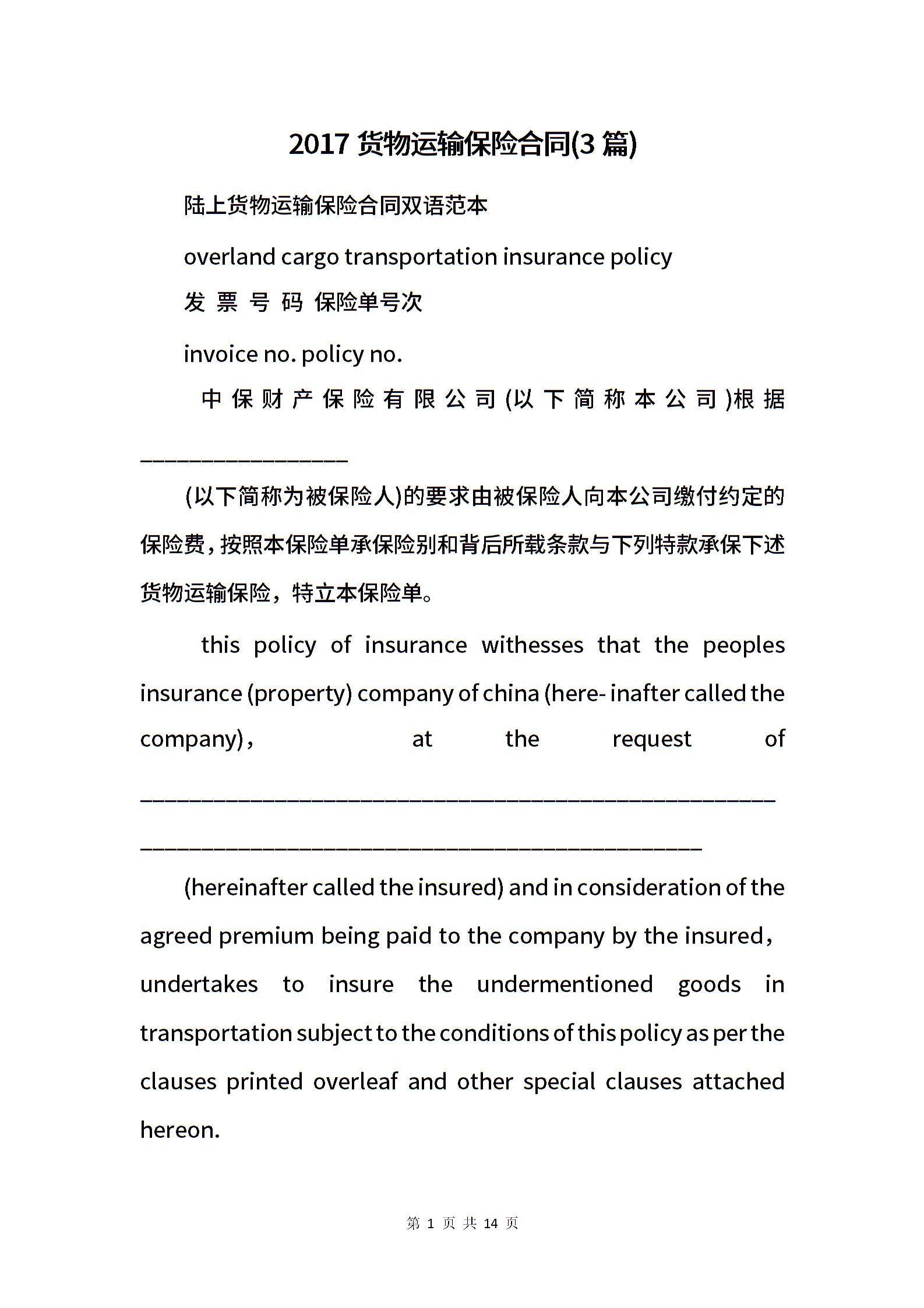 2017货物运输保险合同(3篇).docx