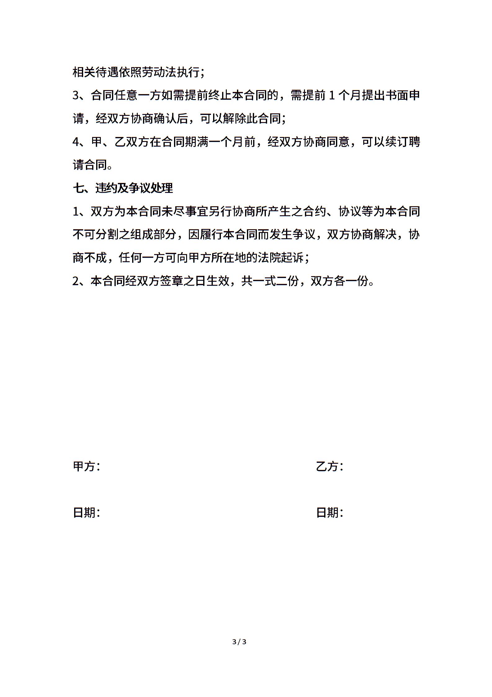 • 分类 聘用合同