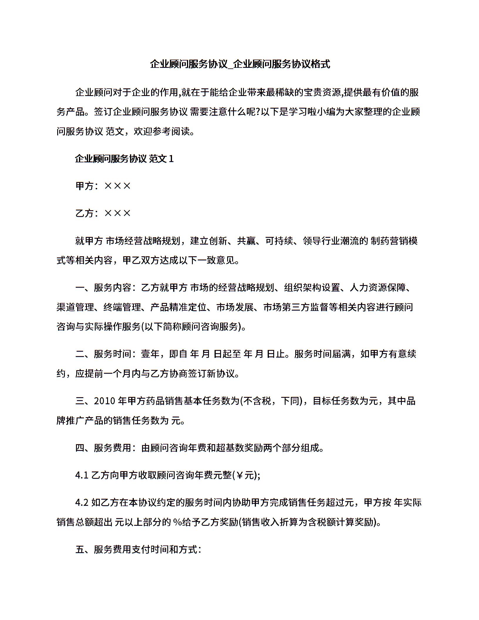 企业顾问服务协议_企业顾问服务协议格式.docx