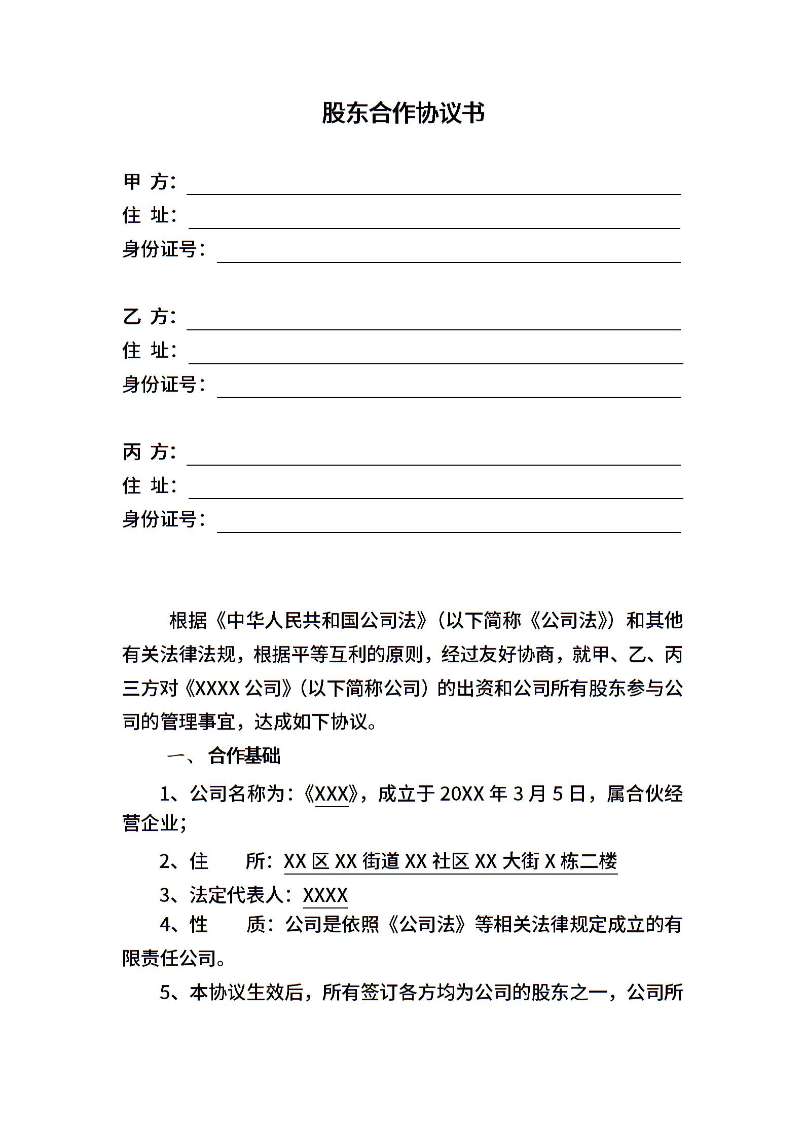 当前位置:量子办公 > 合同模板 > 股东协议 >