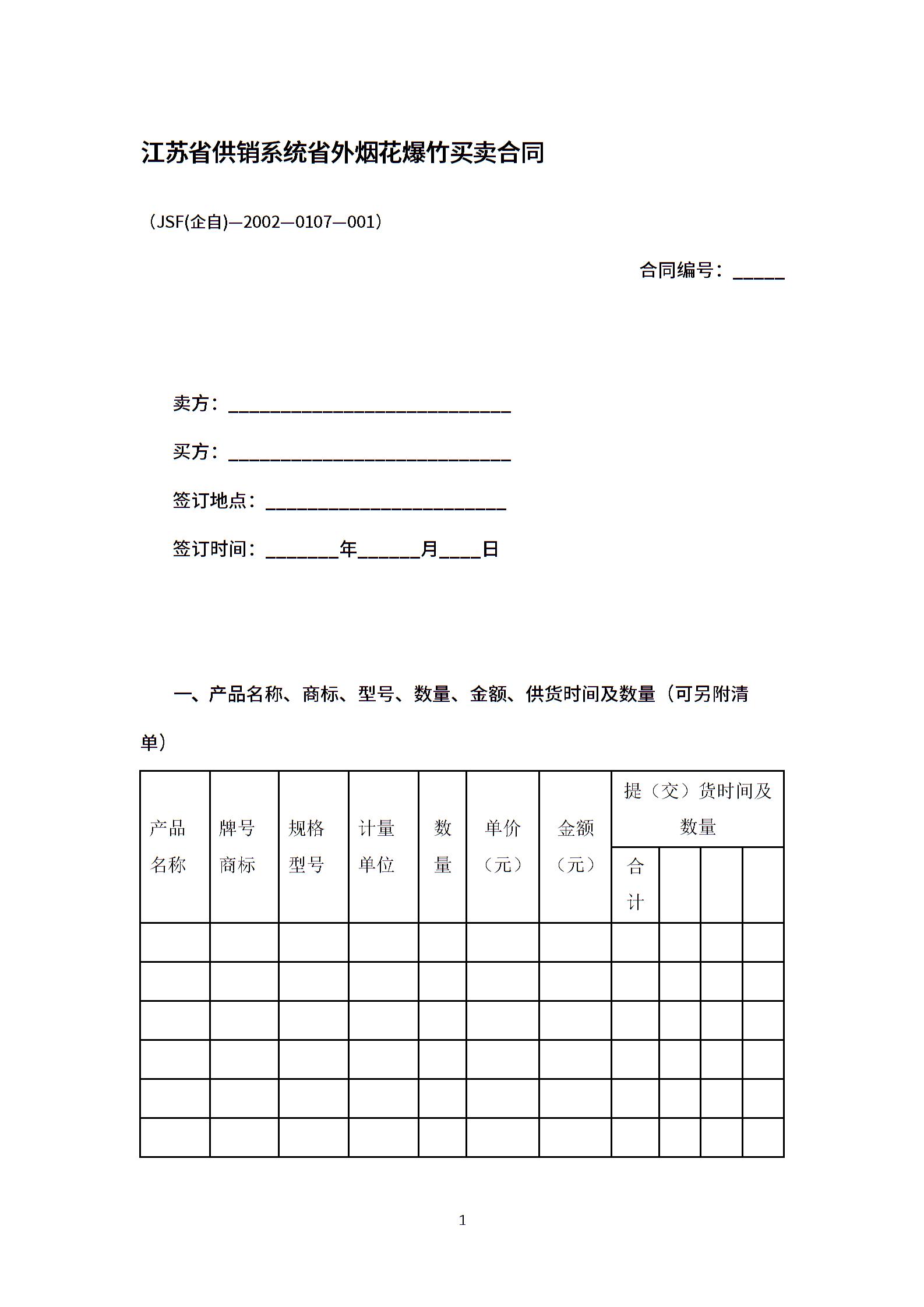江苏省供销系统省外烟花爆竹买卖合同.docx