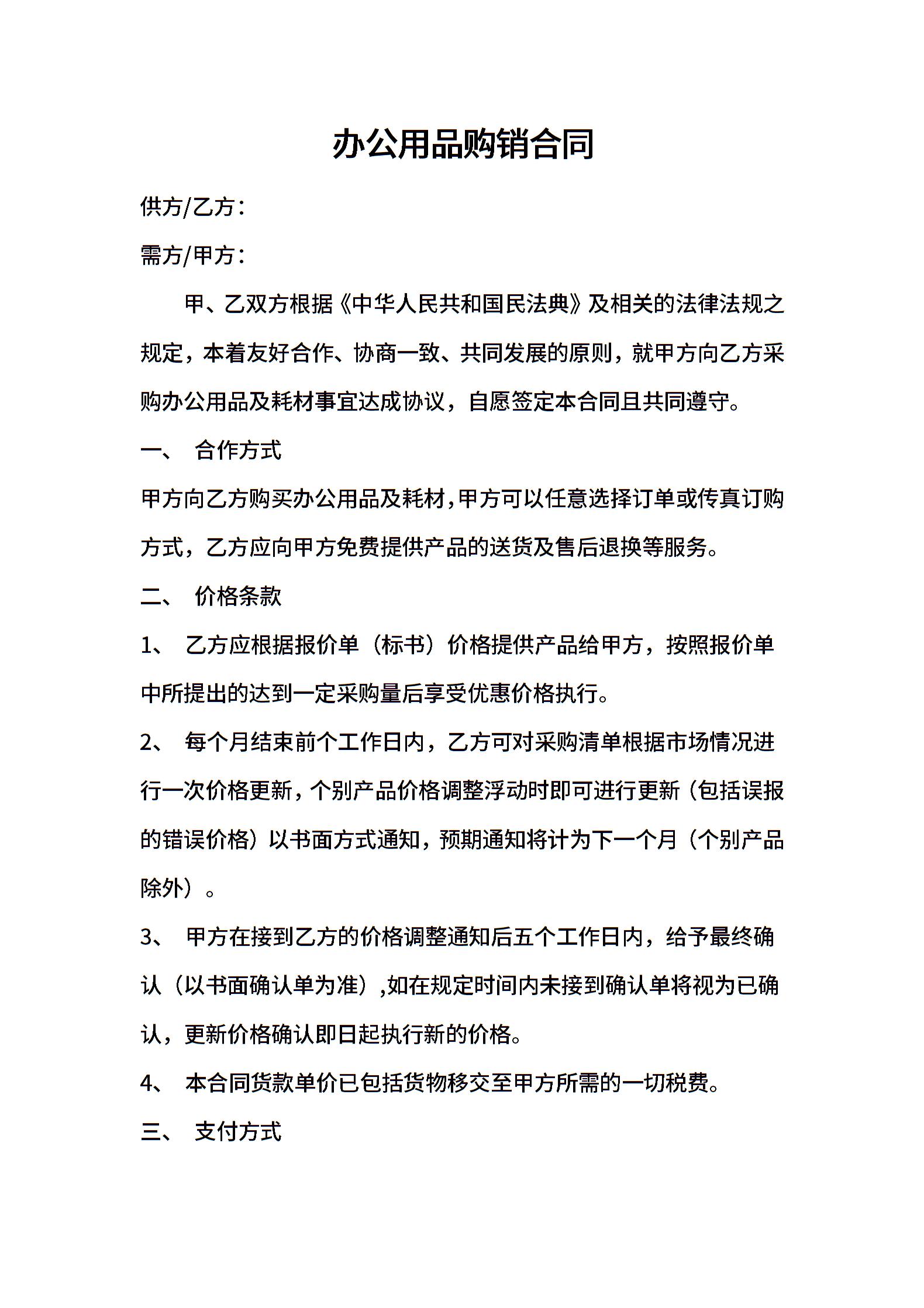 当前位置:量子办公 > 合同模板 > 购销合同 >