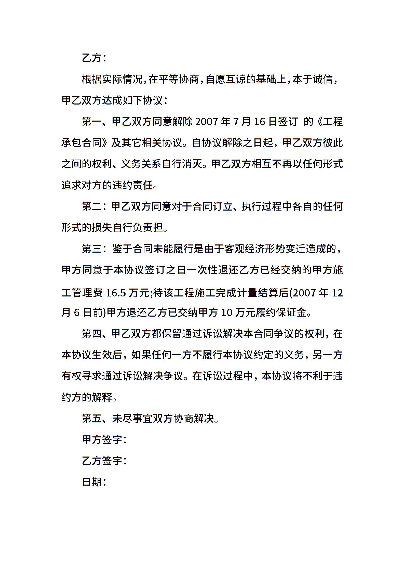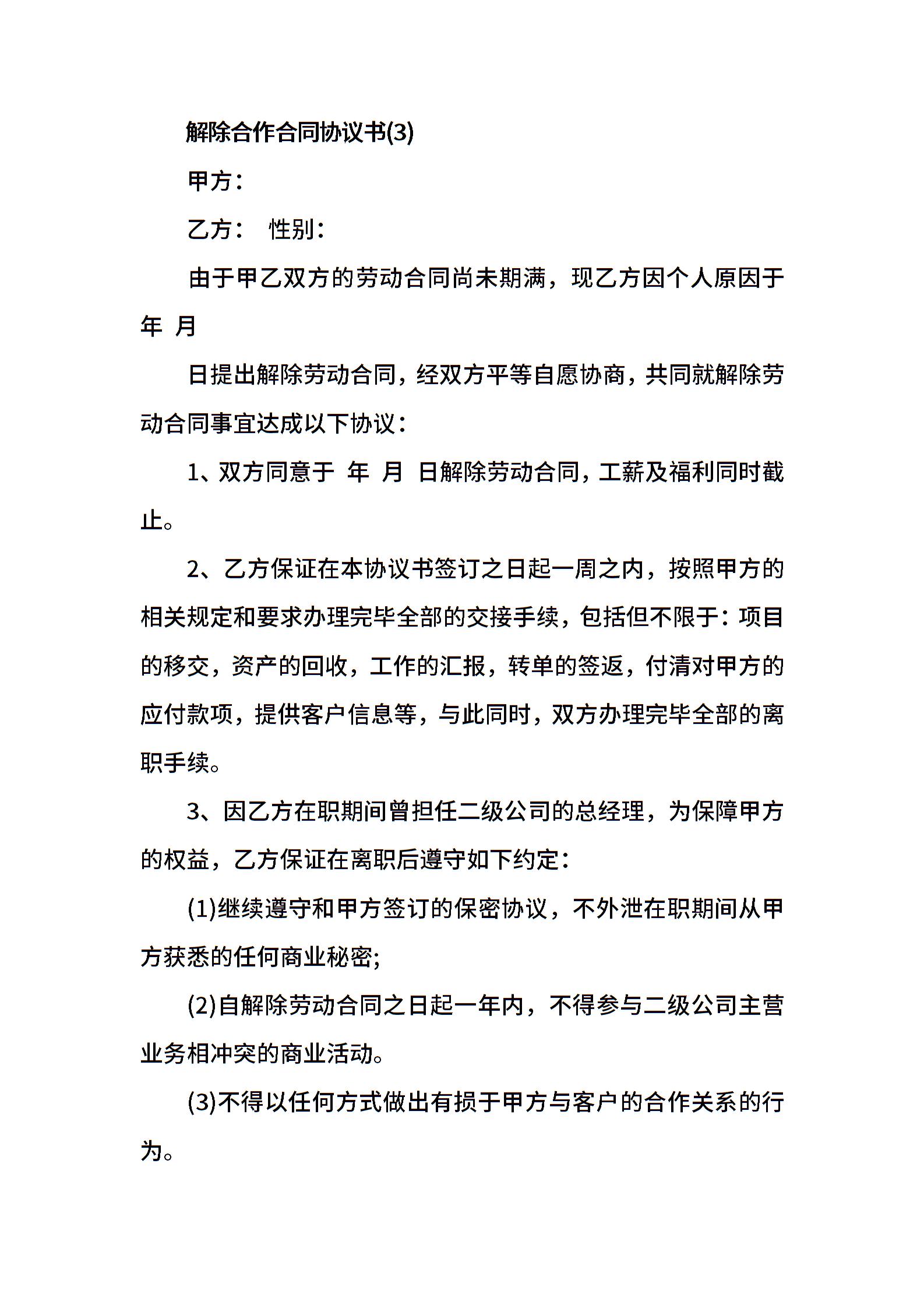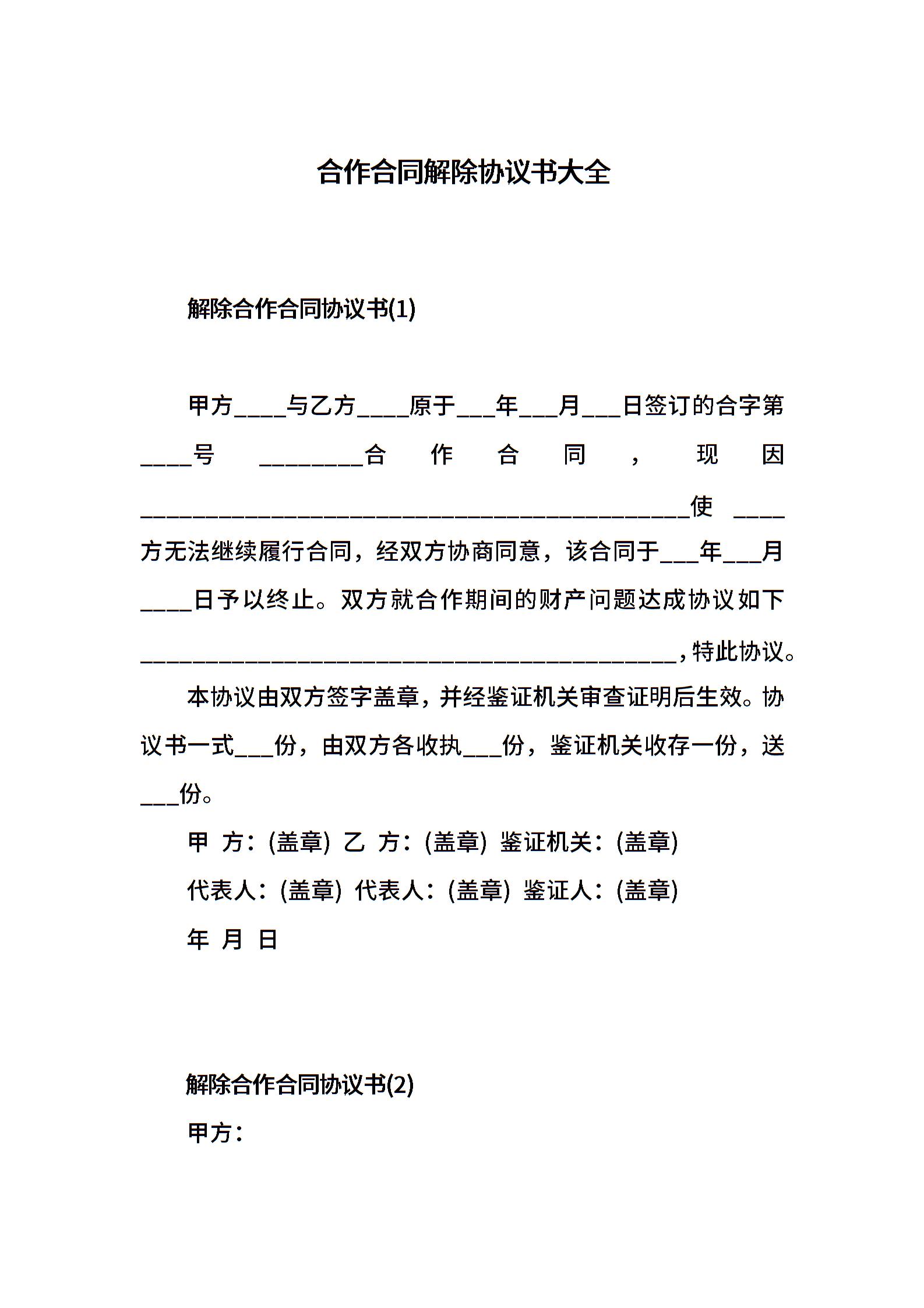 合作合同解除协议书大全