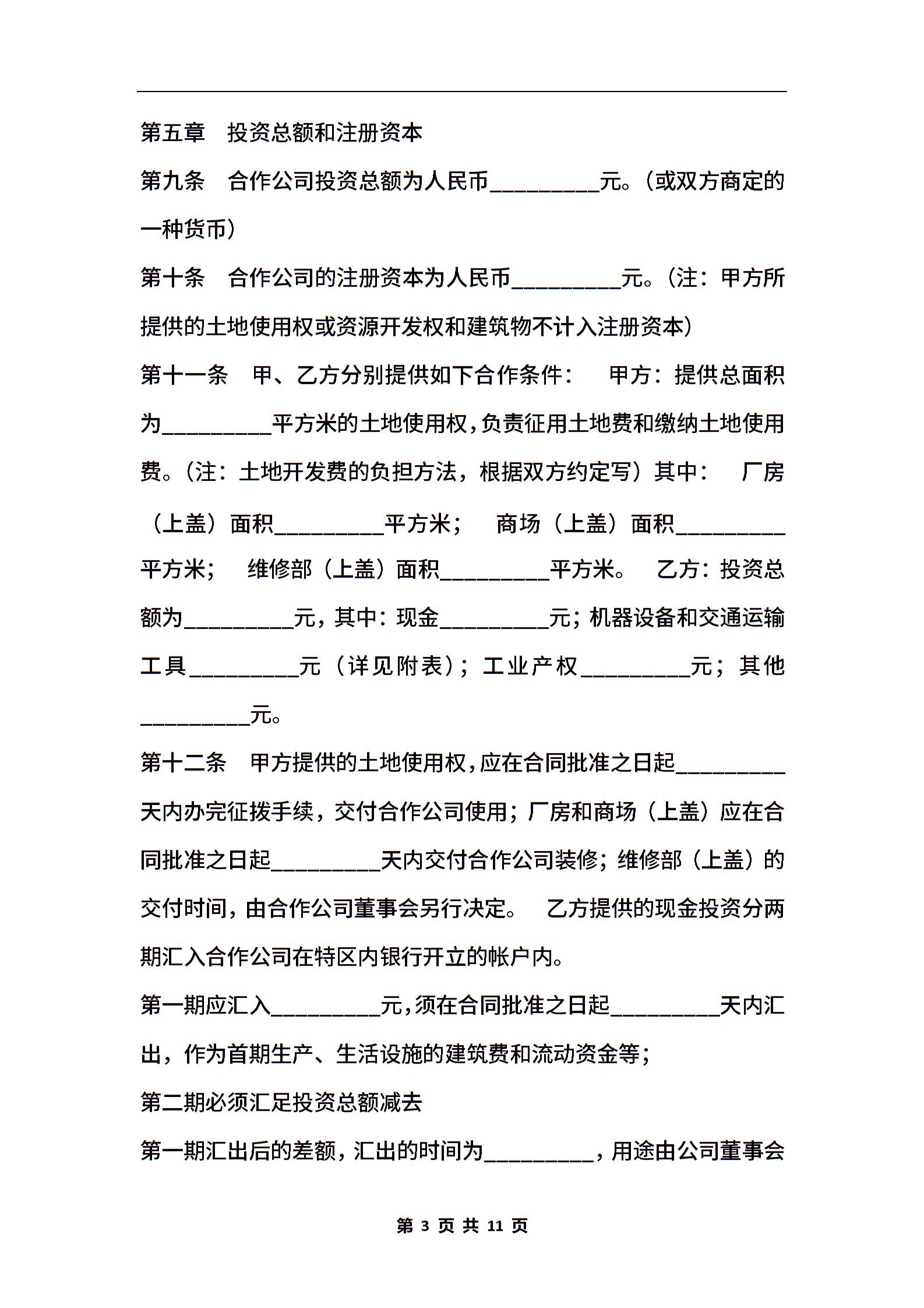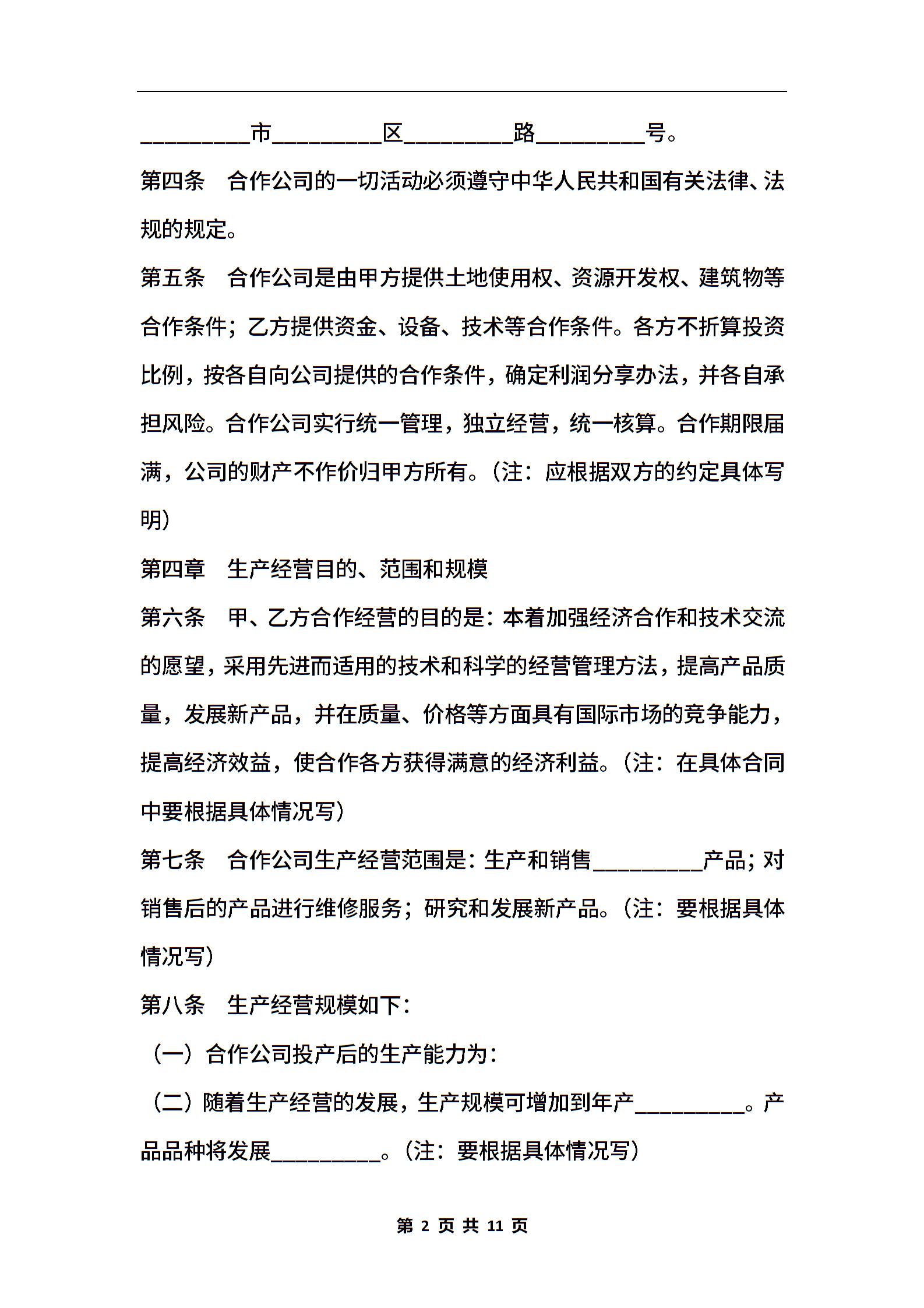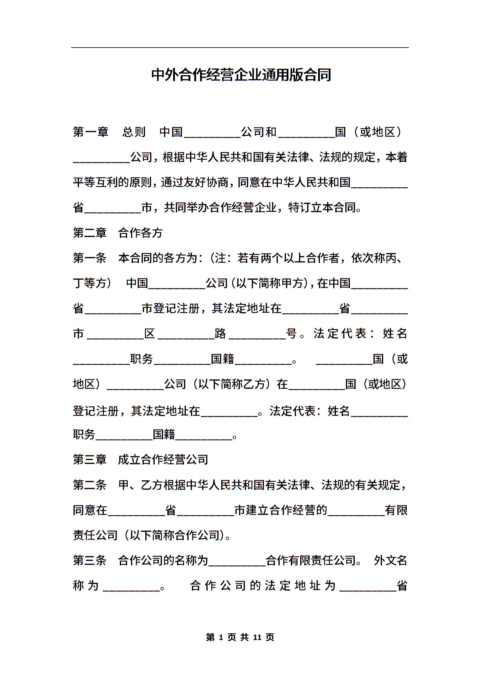 中外合作经营企业通用版合同