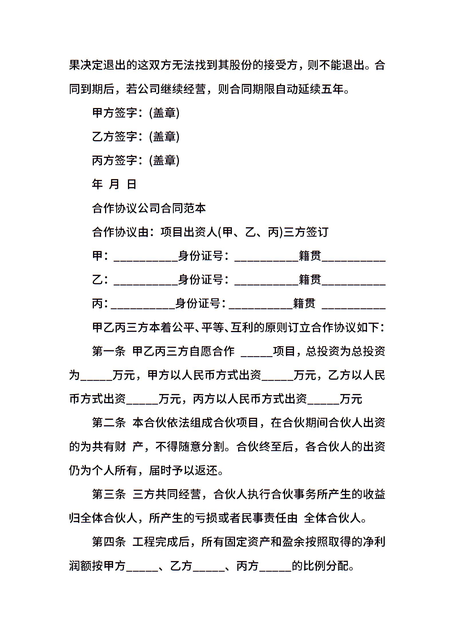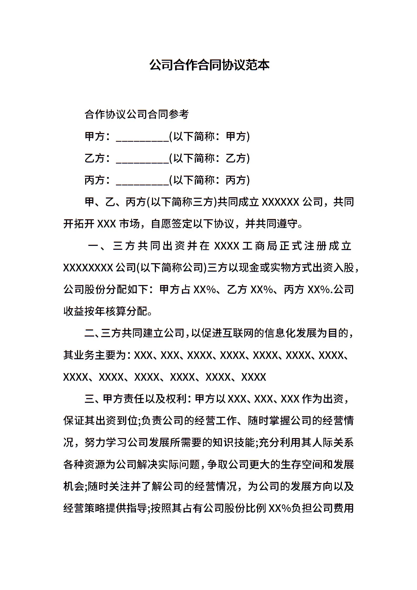 公司合作合同协议范本