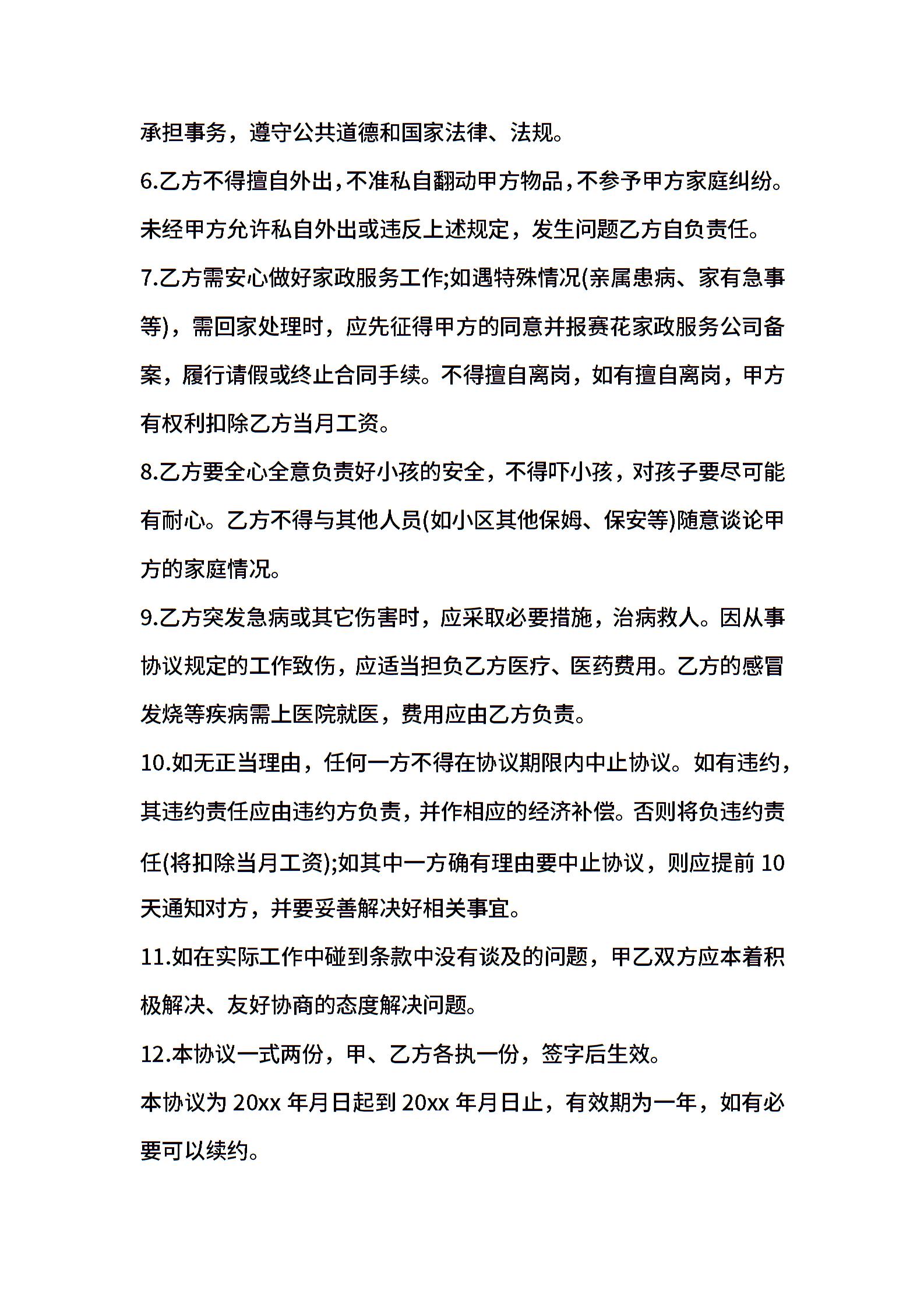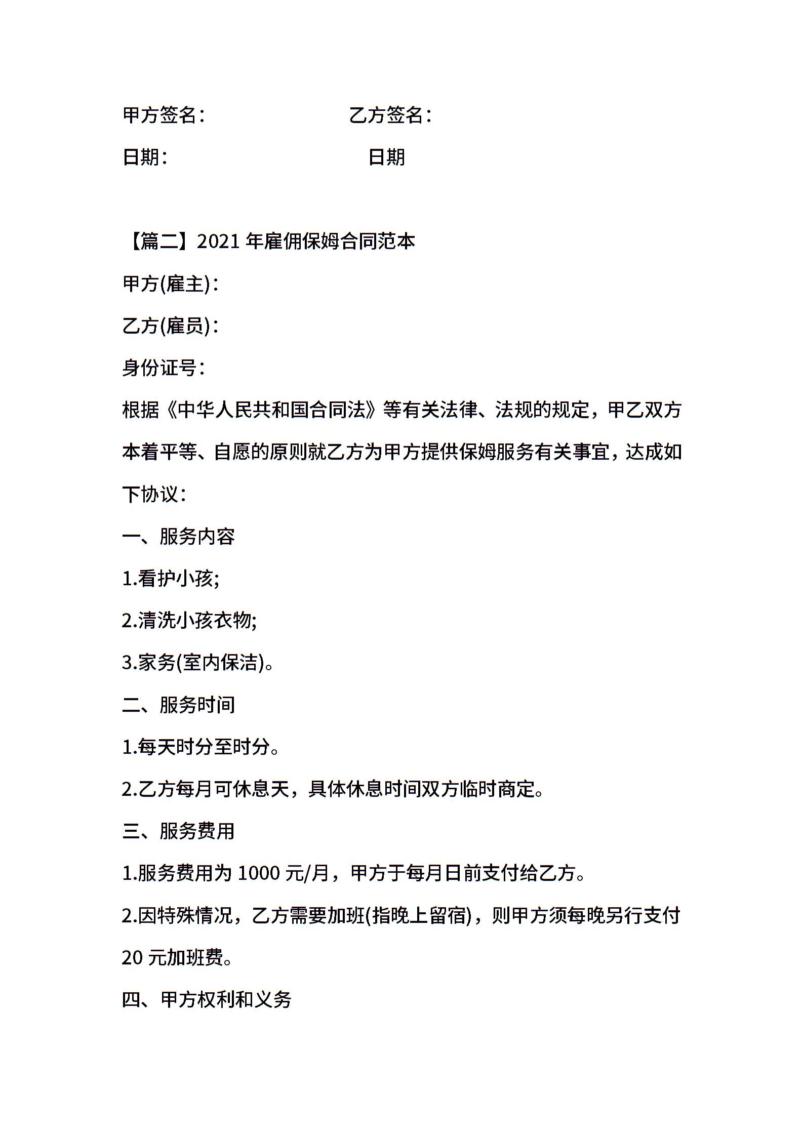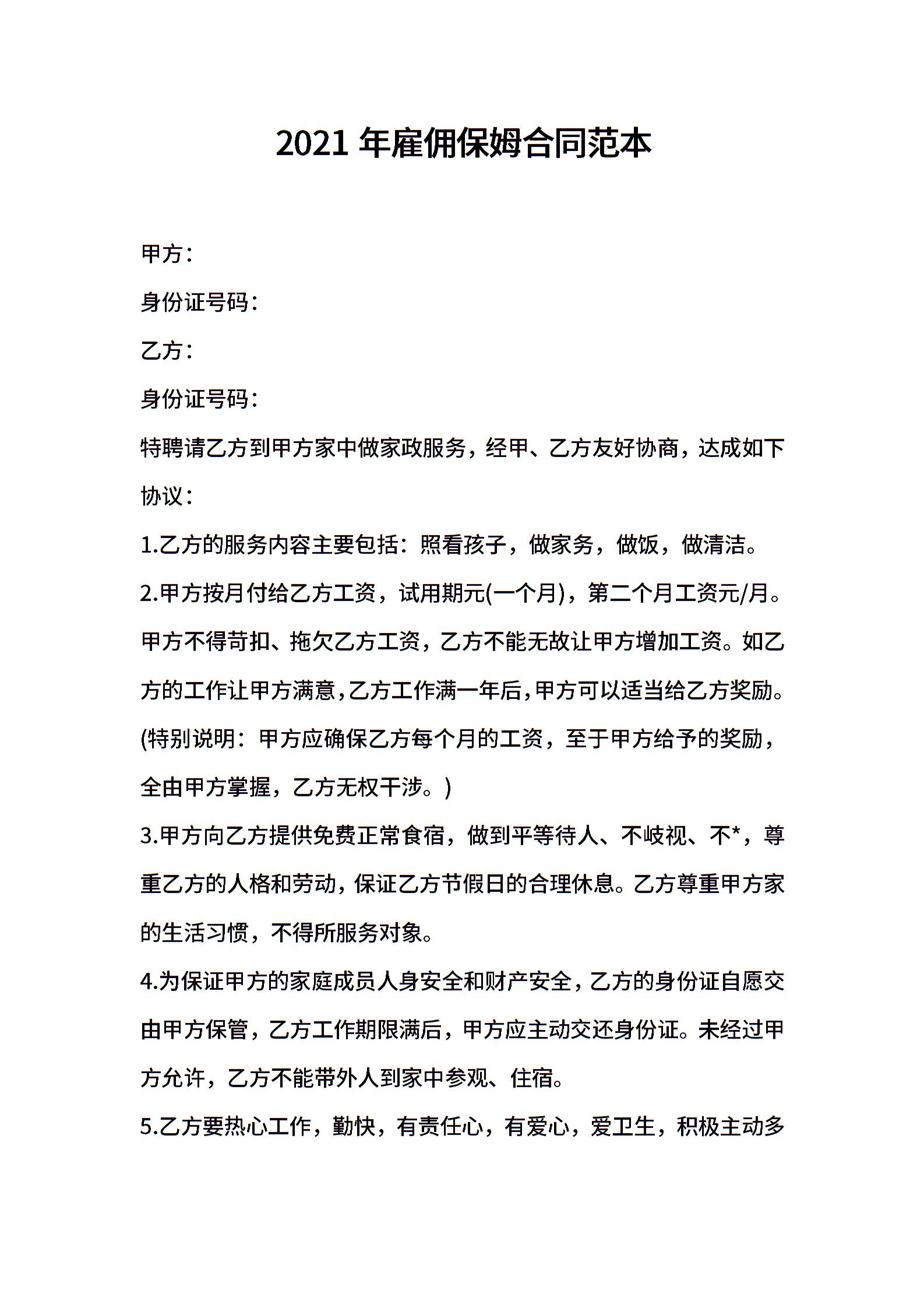 2021年雇佣保姆合同范本 (2)