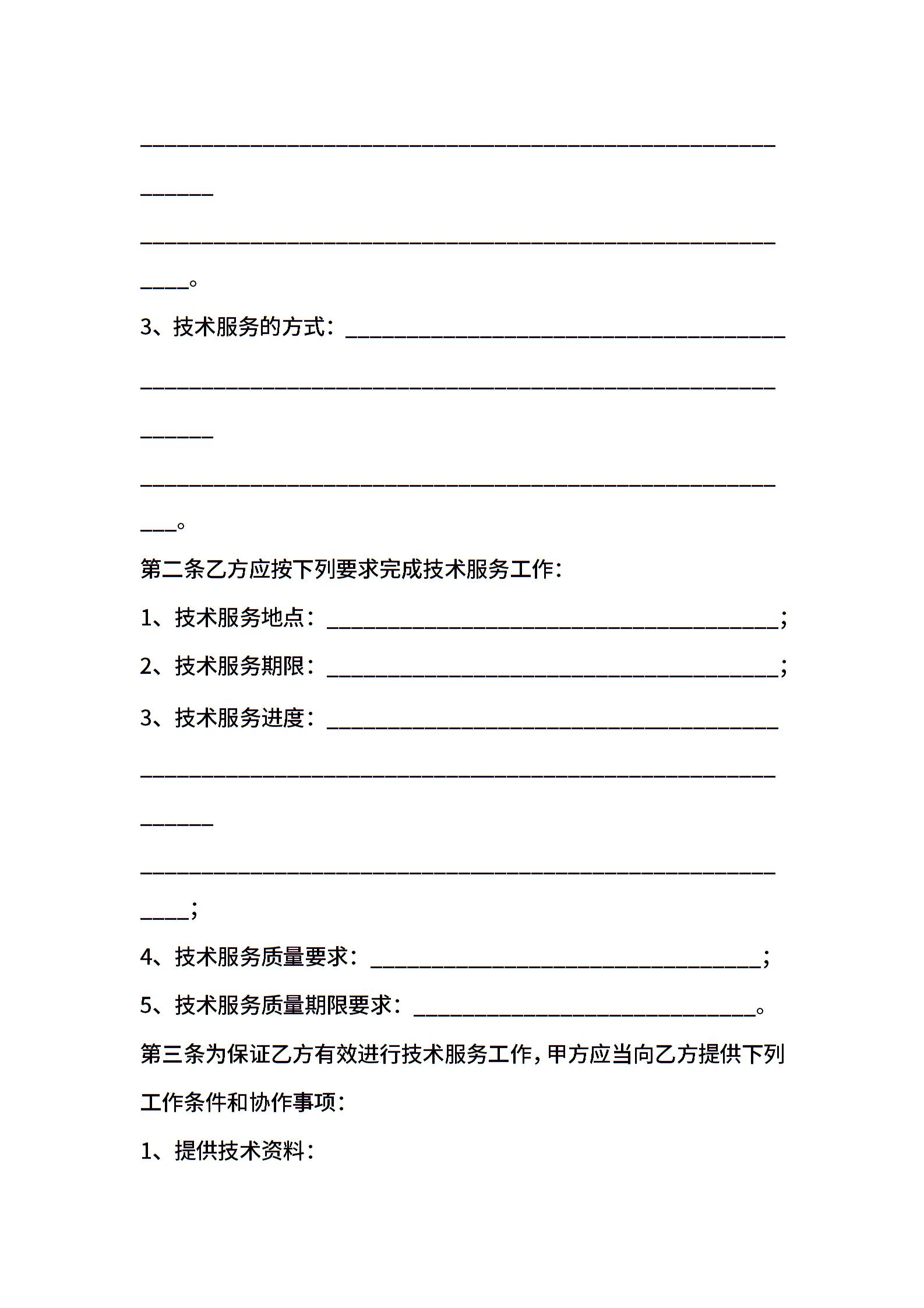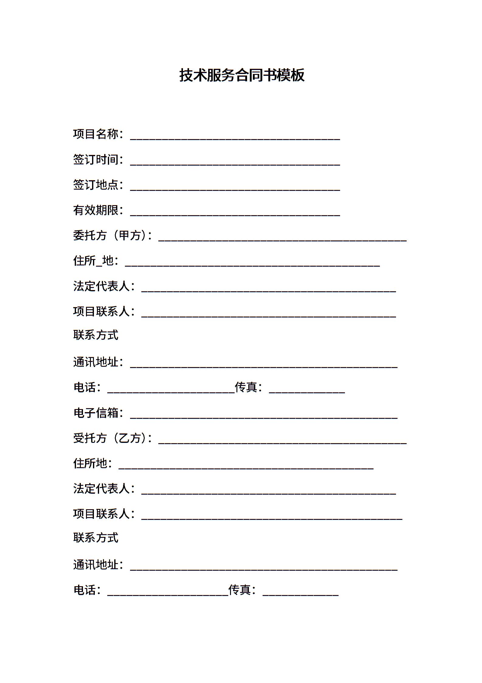 技术服务合同书模板