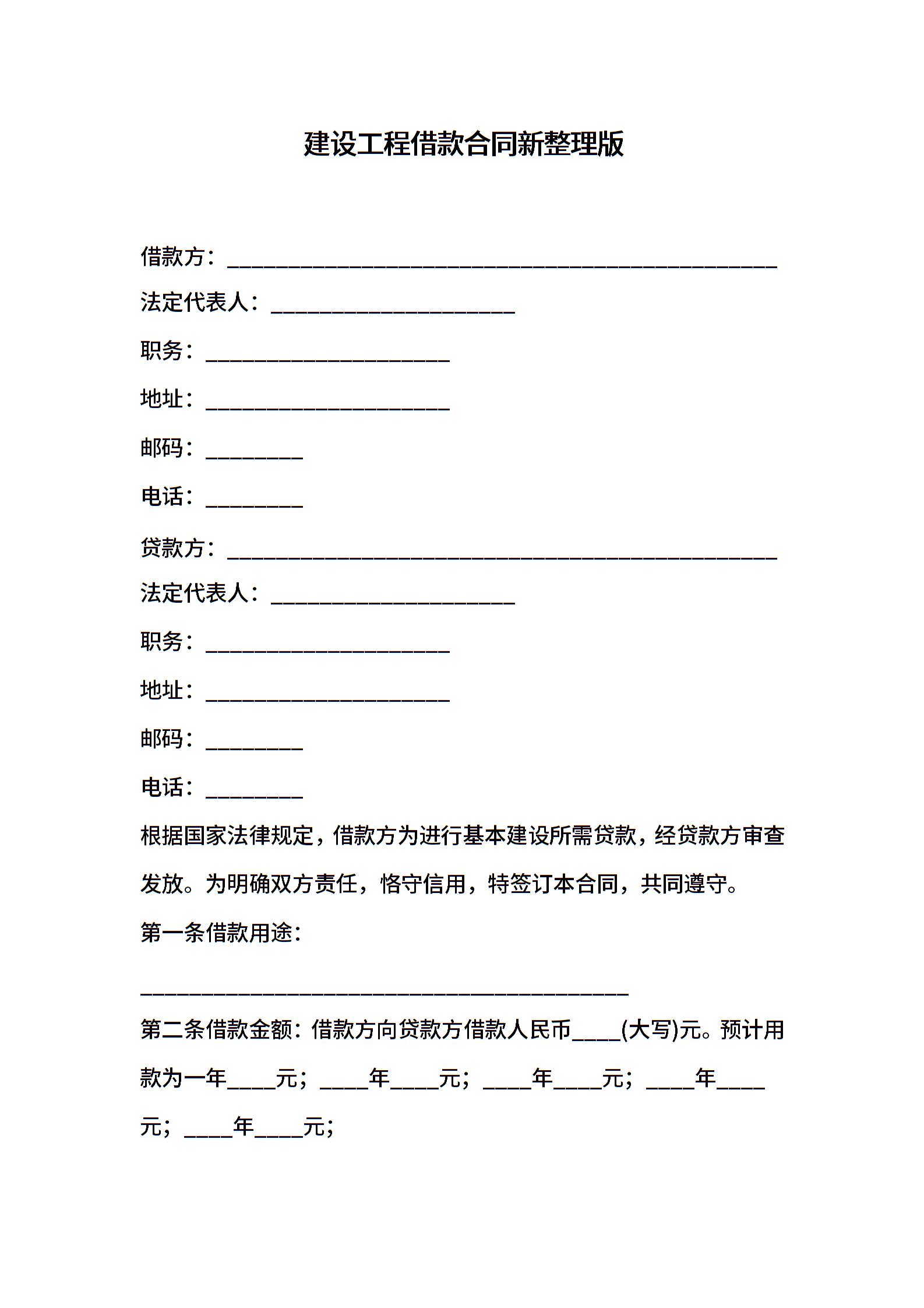 建设工程借款合同新整理版