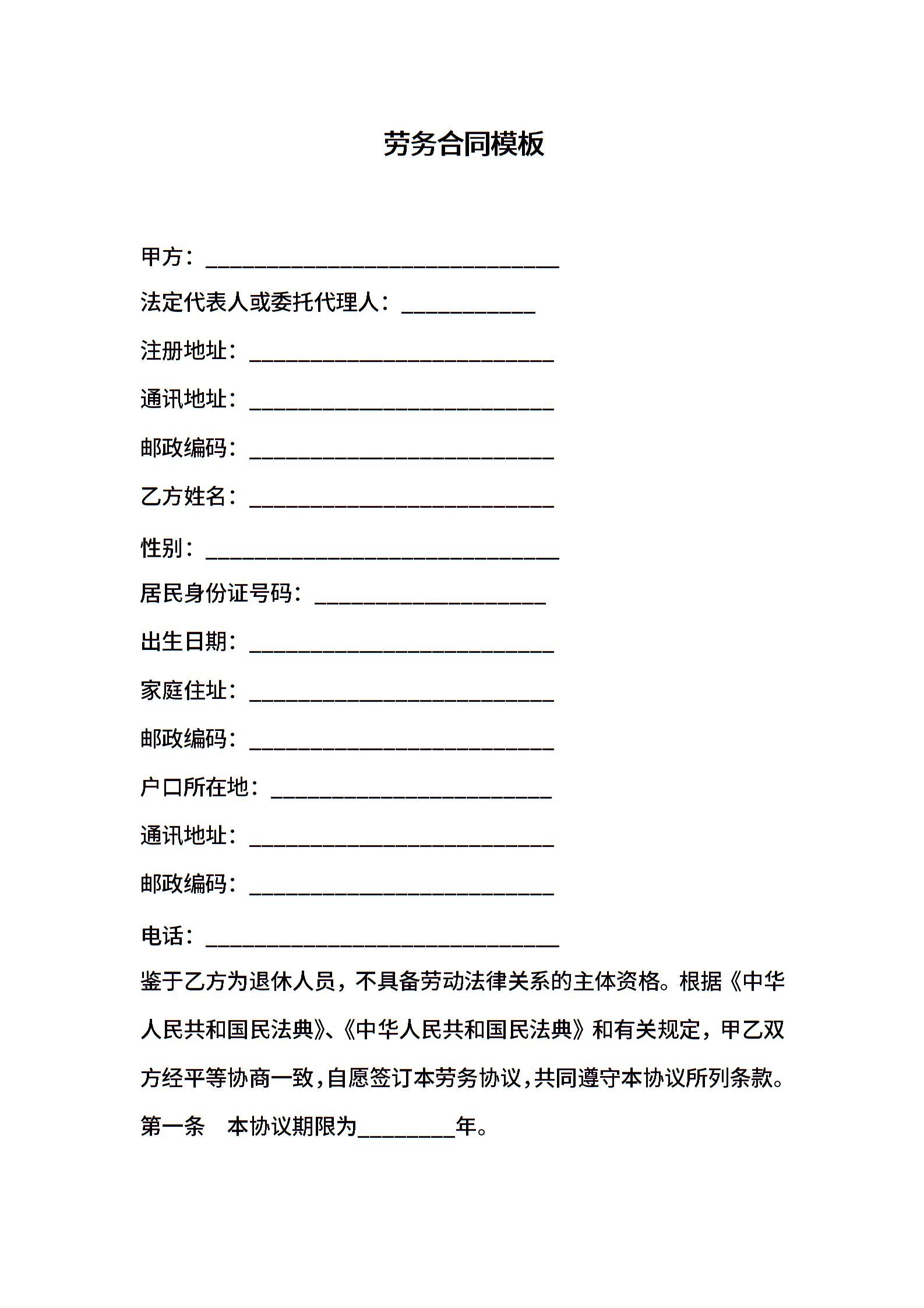 当前位置:量子办公 > 合同模板 > 劳务合同 >