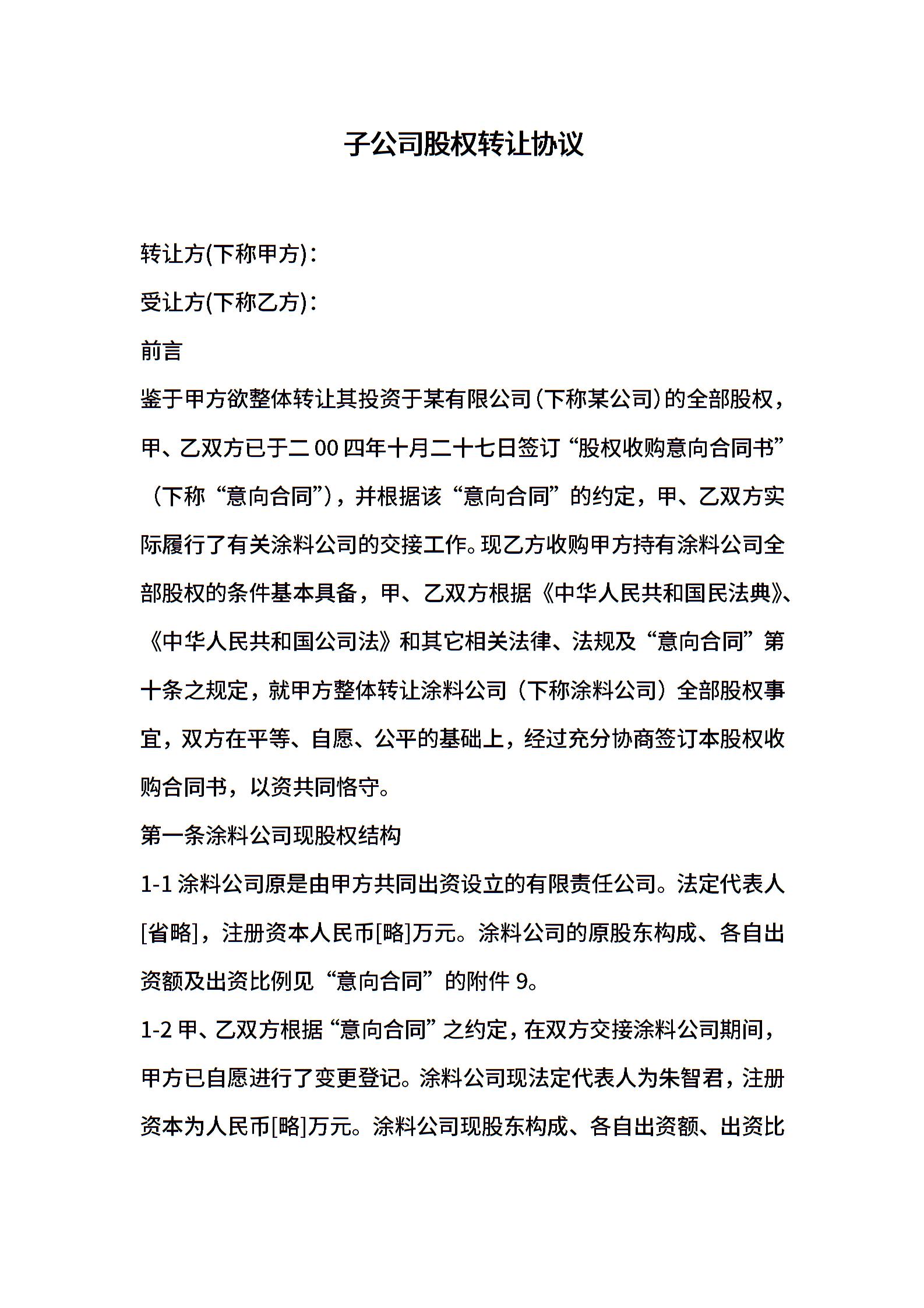 当前位置:量子办公 > 合同模板 > 股权转让协议 >