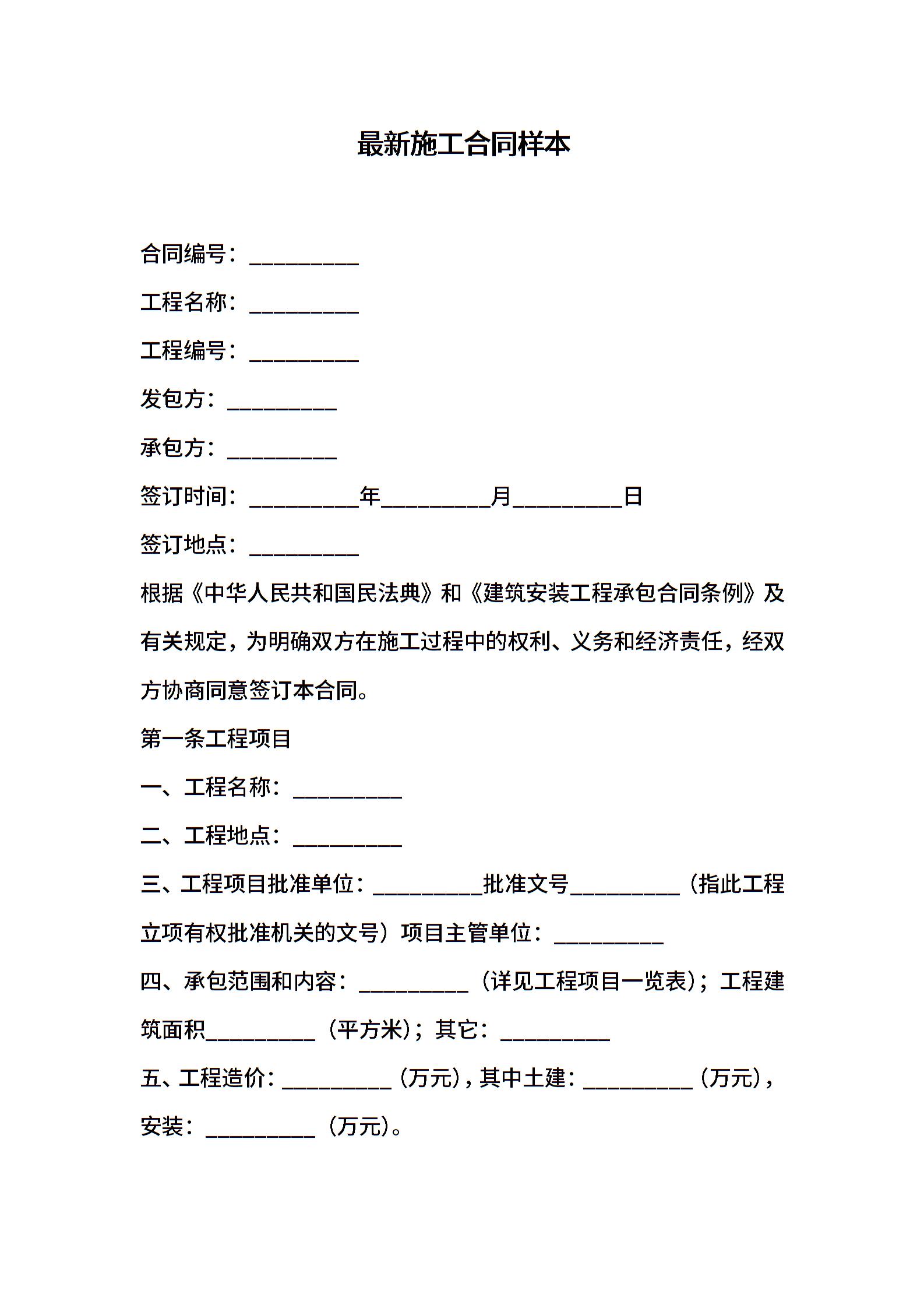 最新施工合同样本