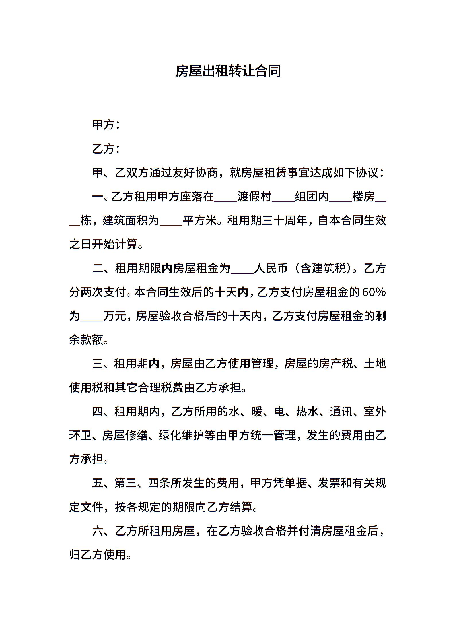 房屋出租转让合同