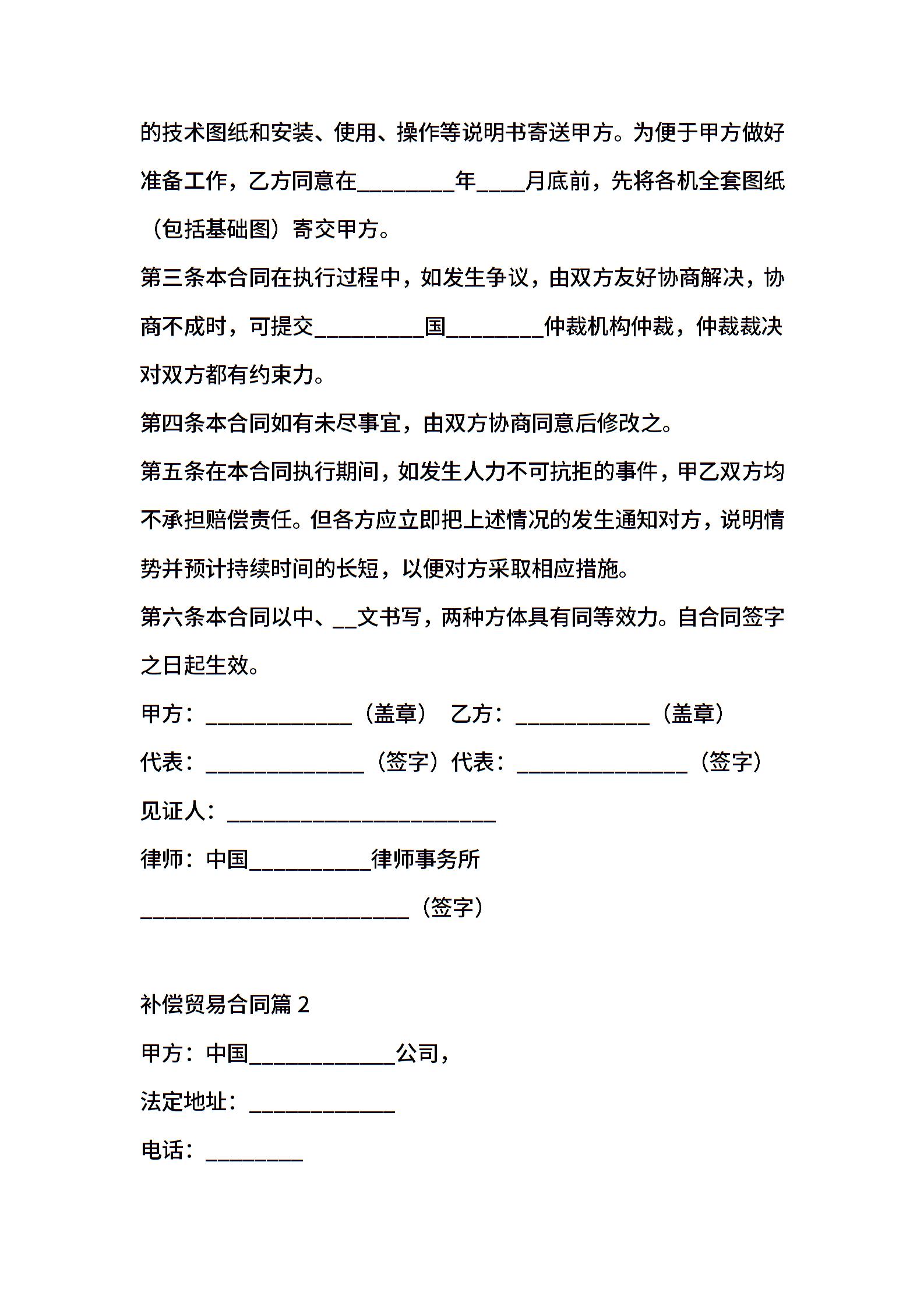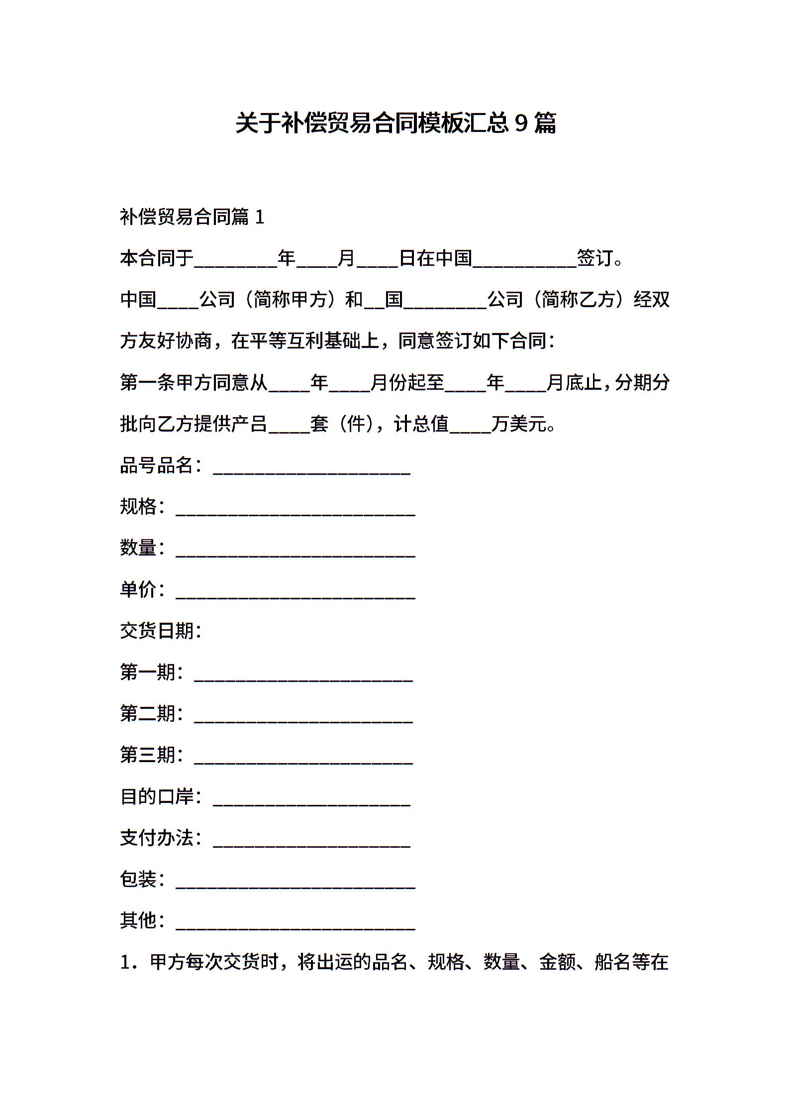 关于补偿贸易合同模板汇总9篇