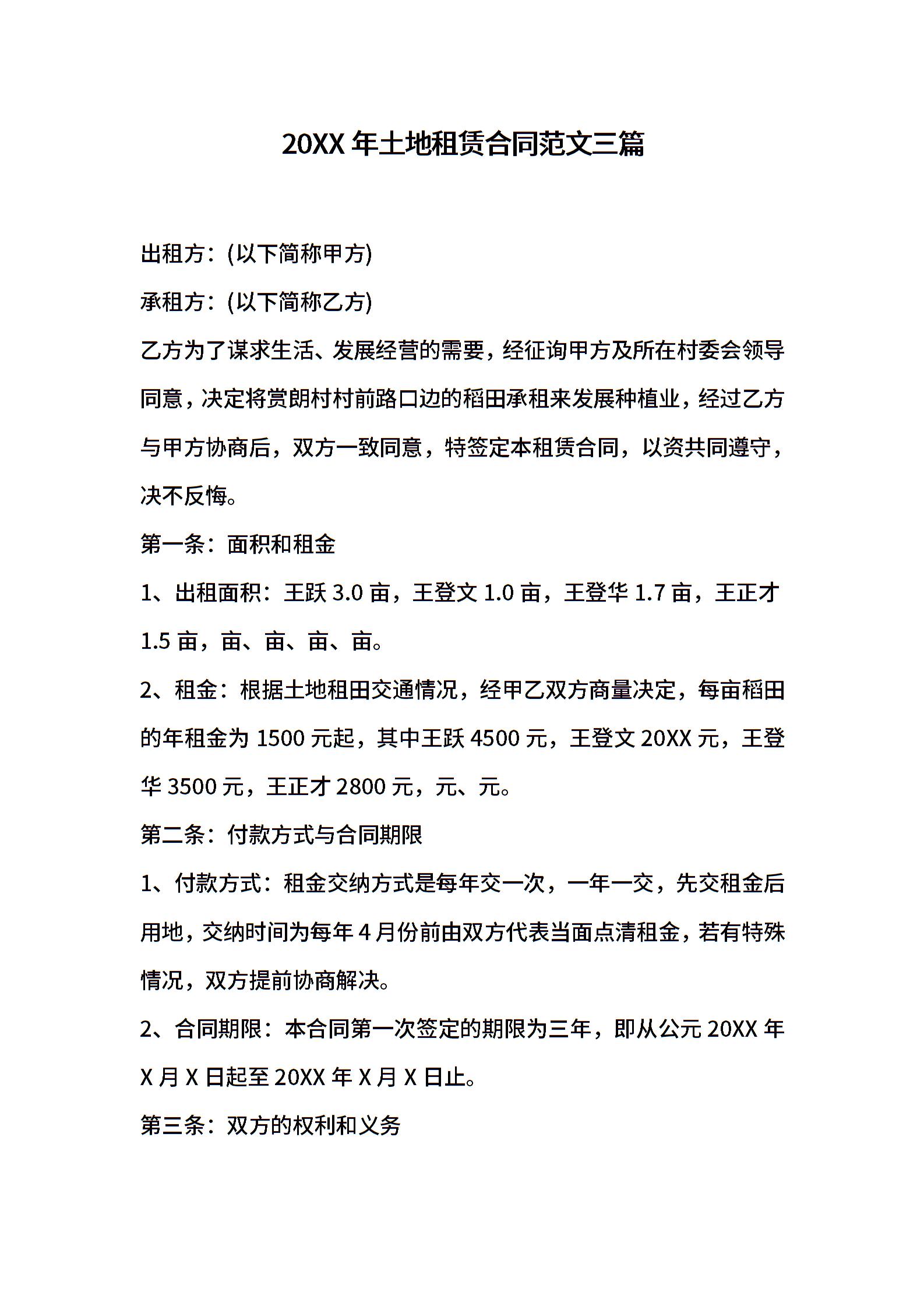 2021年土地租赁合同范文三篇