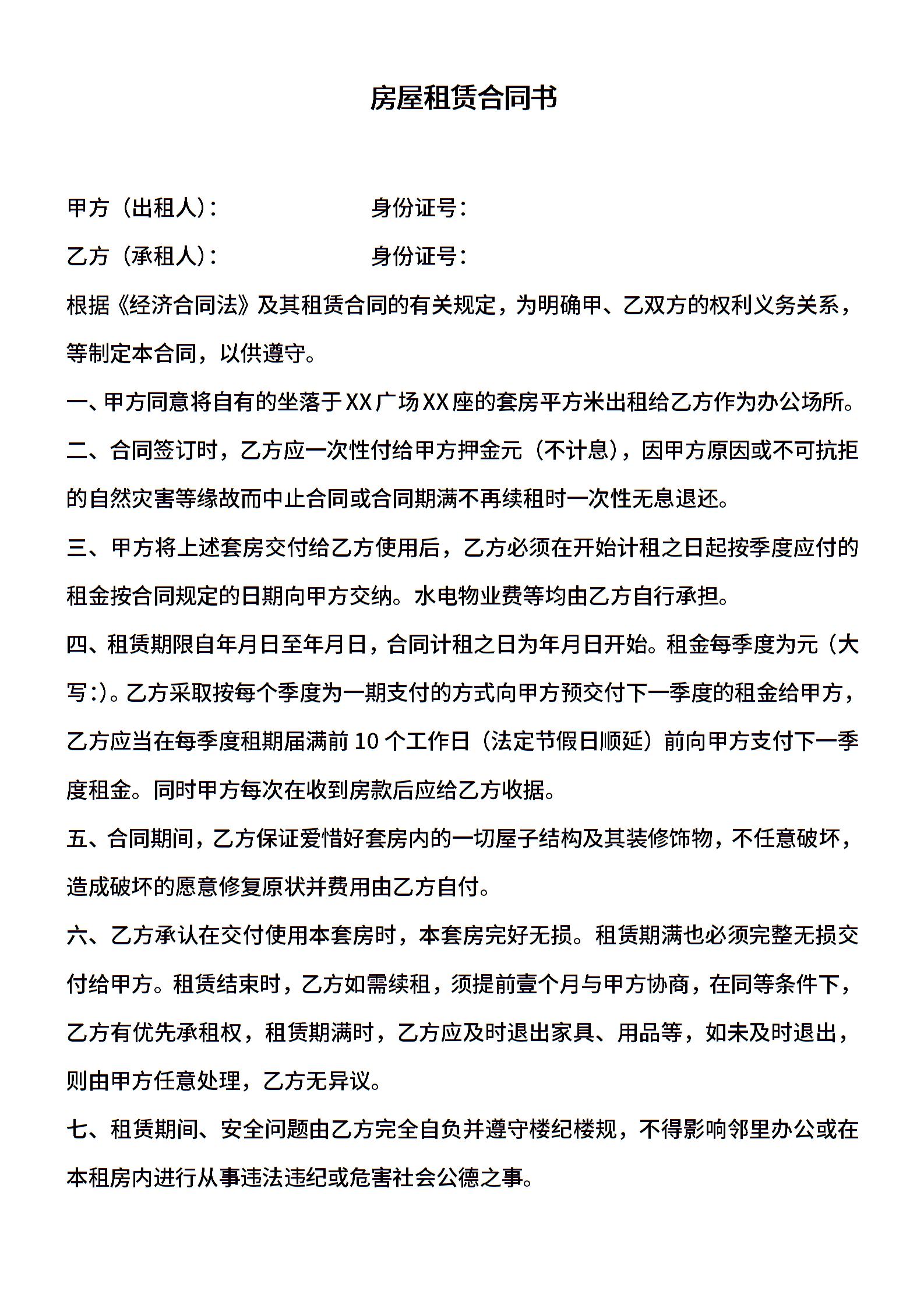 当前位置:量子办公 > 合同模板 > 租赁合同 >