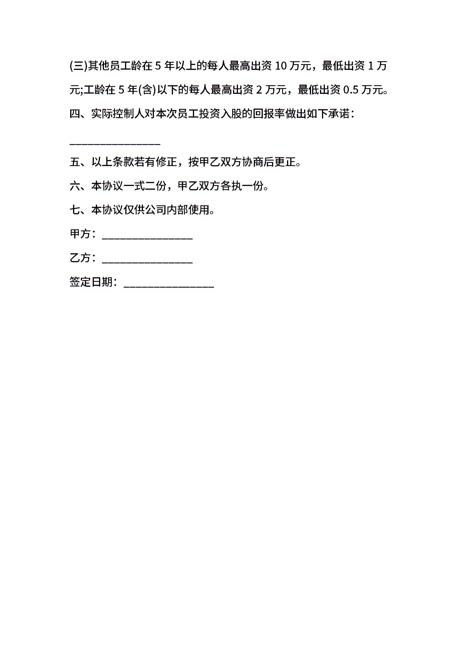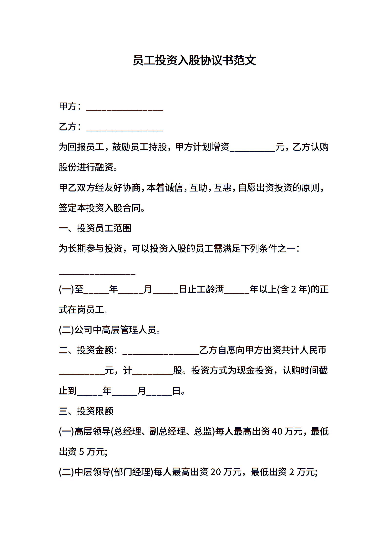 员工投资入股协议书范文
