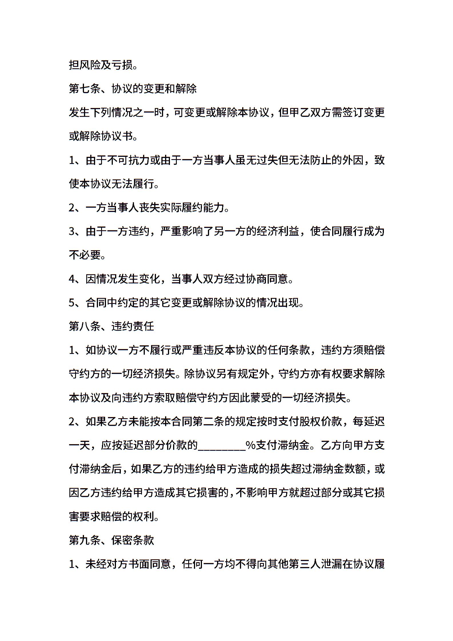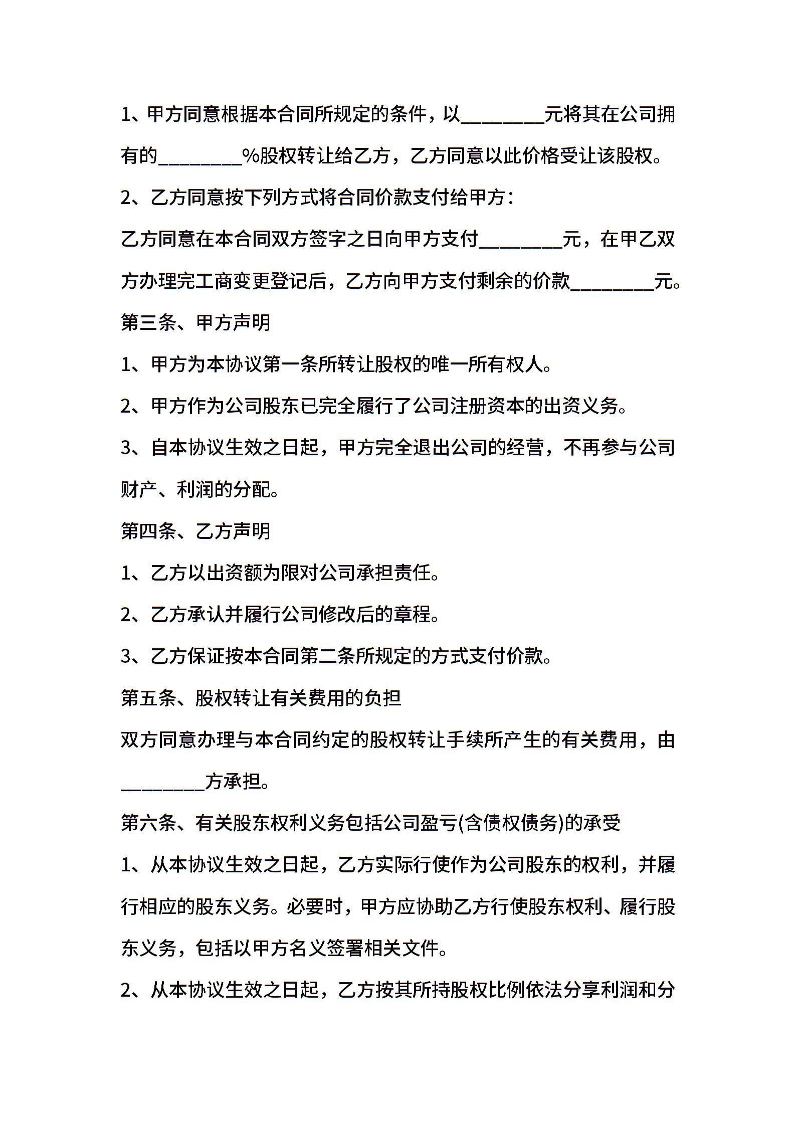 • 分类 股权转让协议