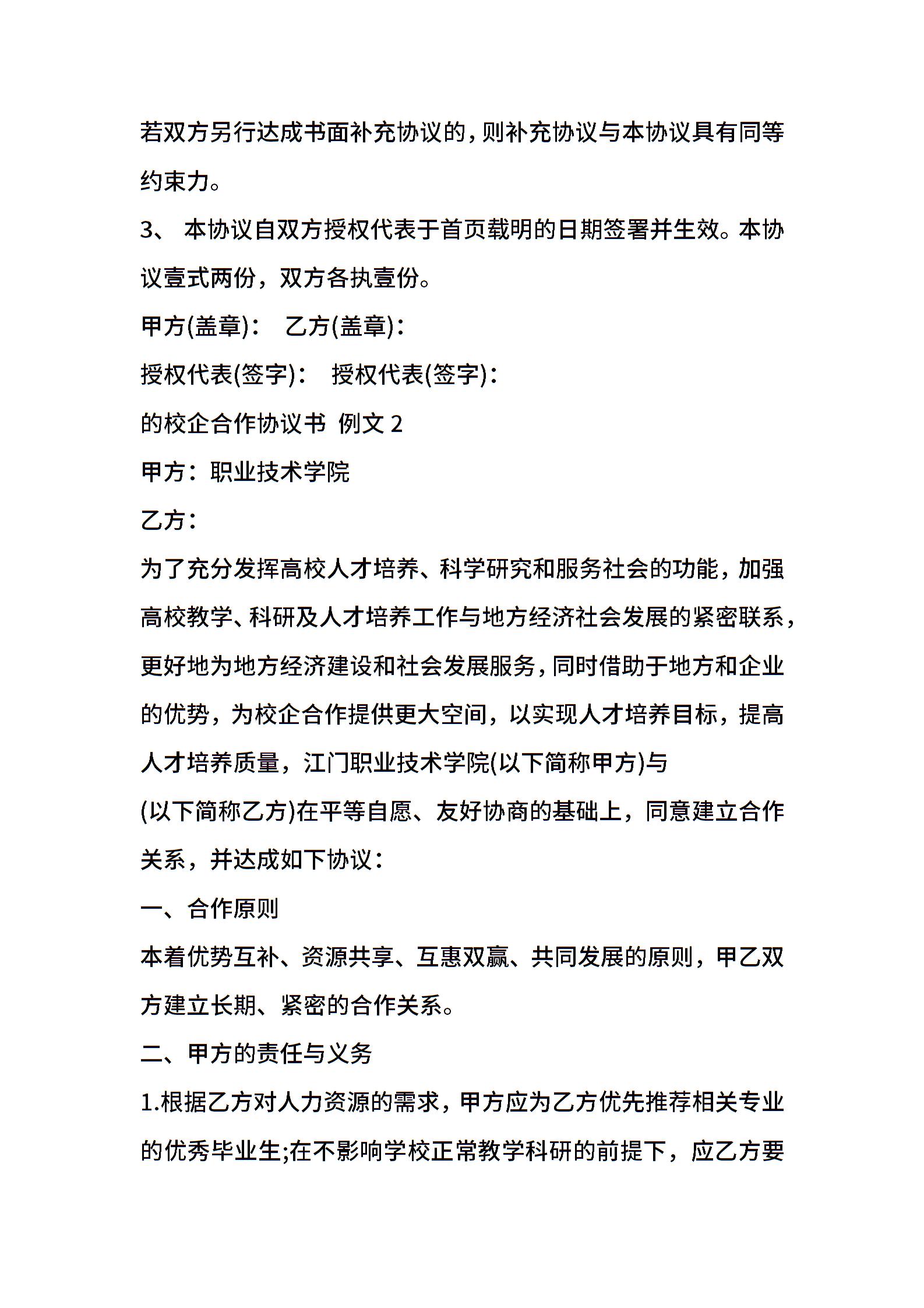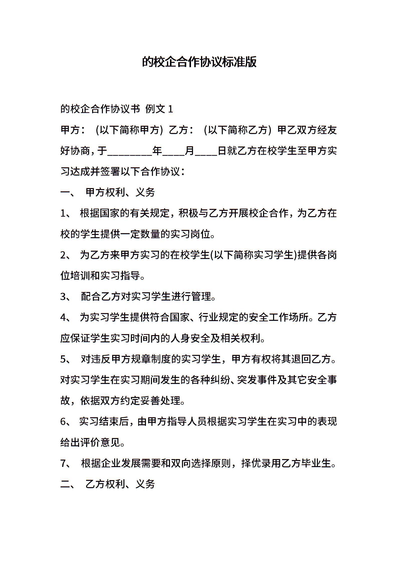 的校企合作协议标准版