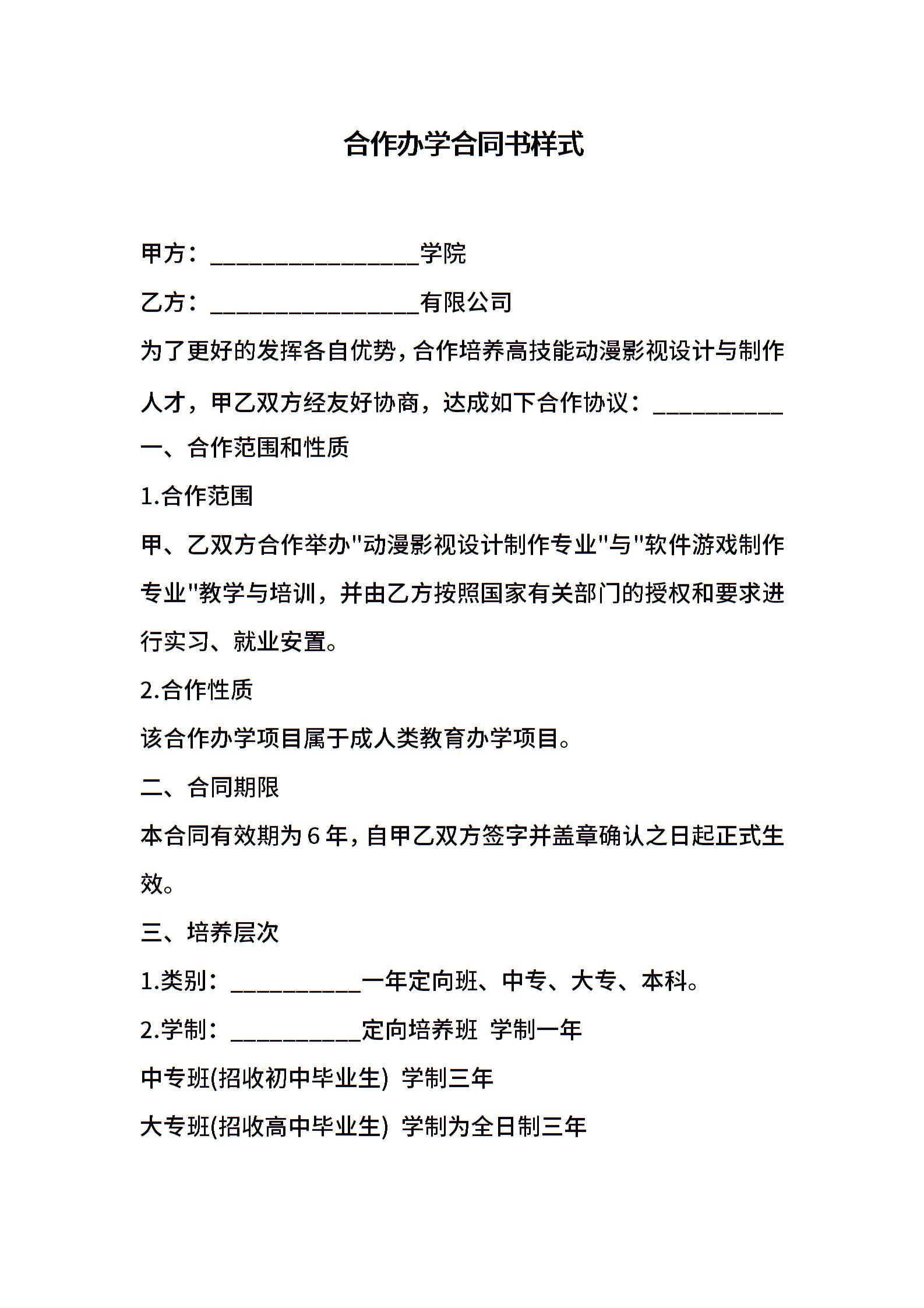 当前位置:量子办公 > 合同模板 > 合作合同 >