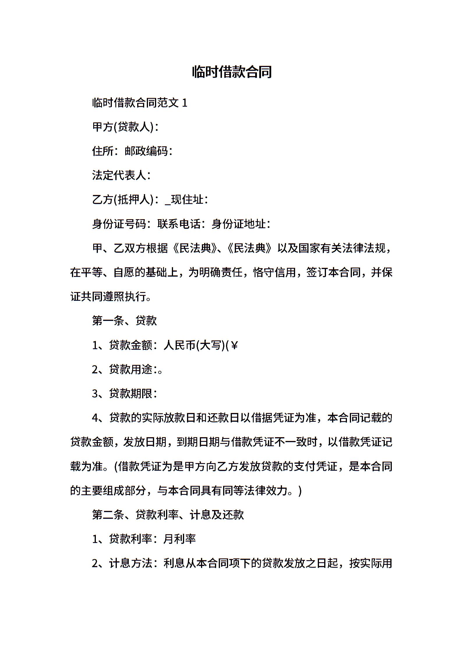 临时借款合同