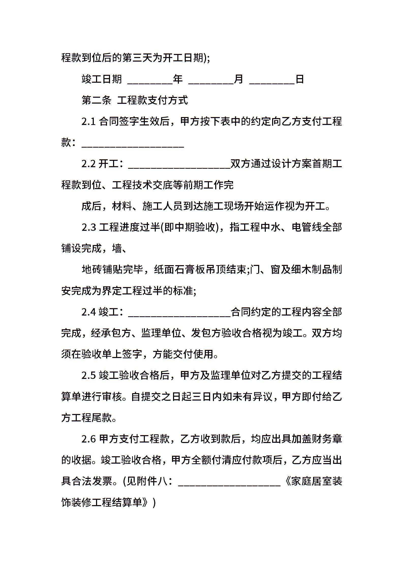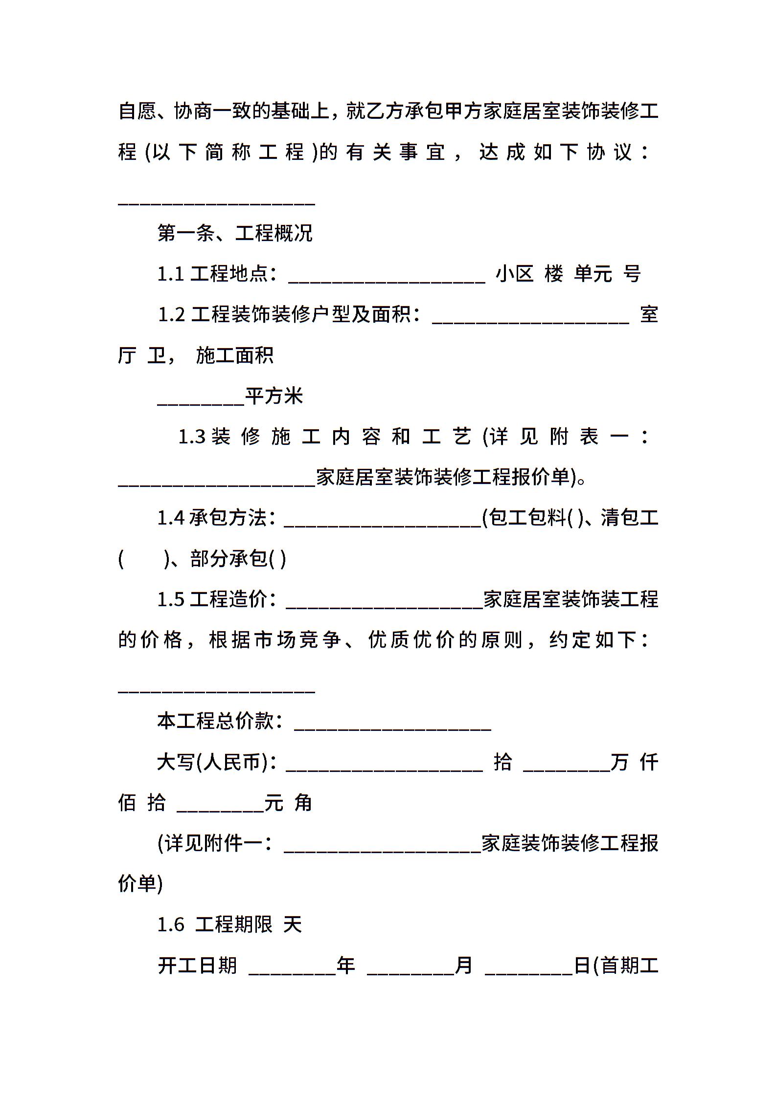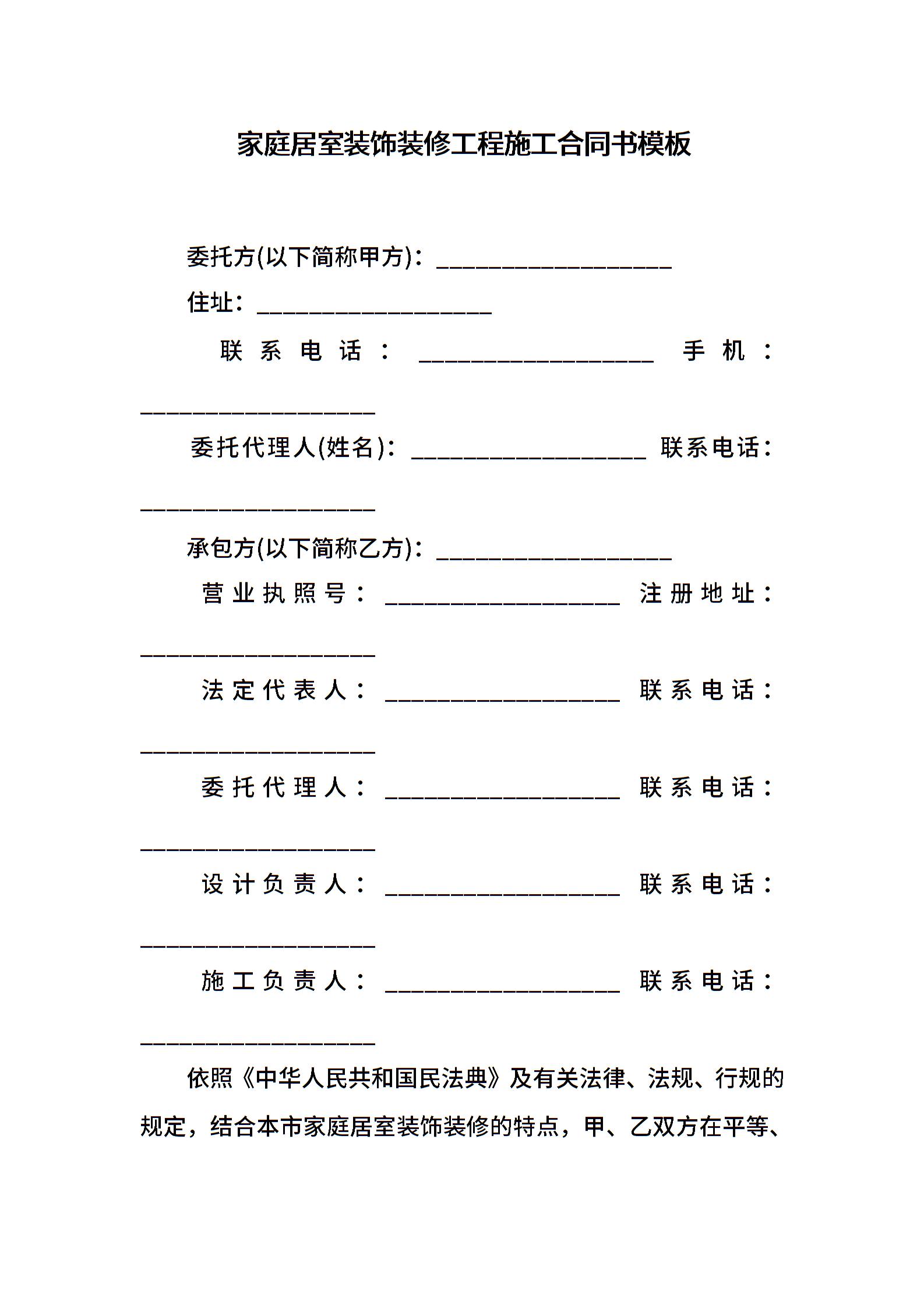 家庭居室装饰装修工程施工合同书模板