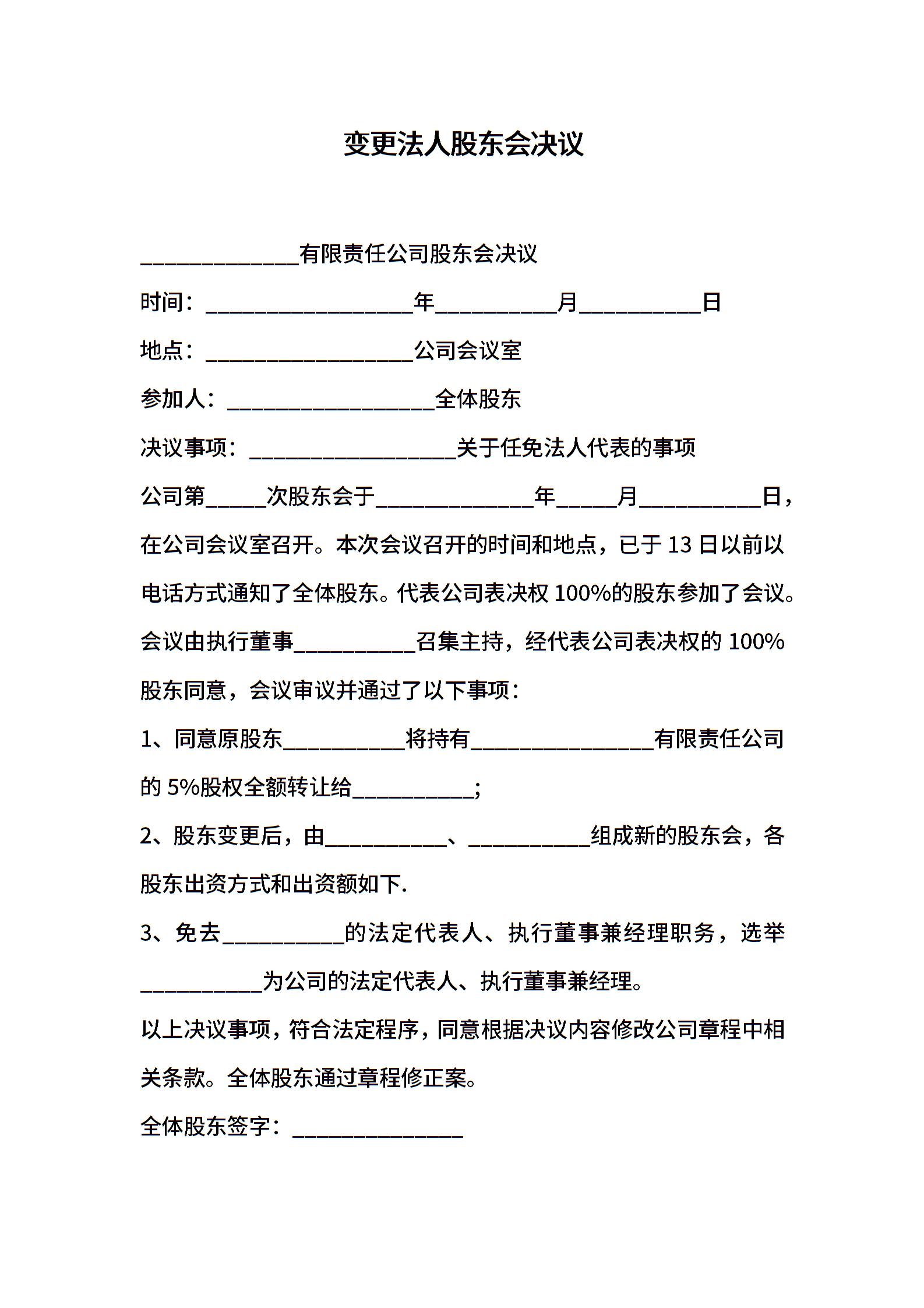 变更法人股东会决议