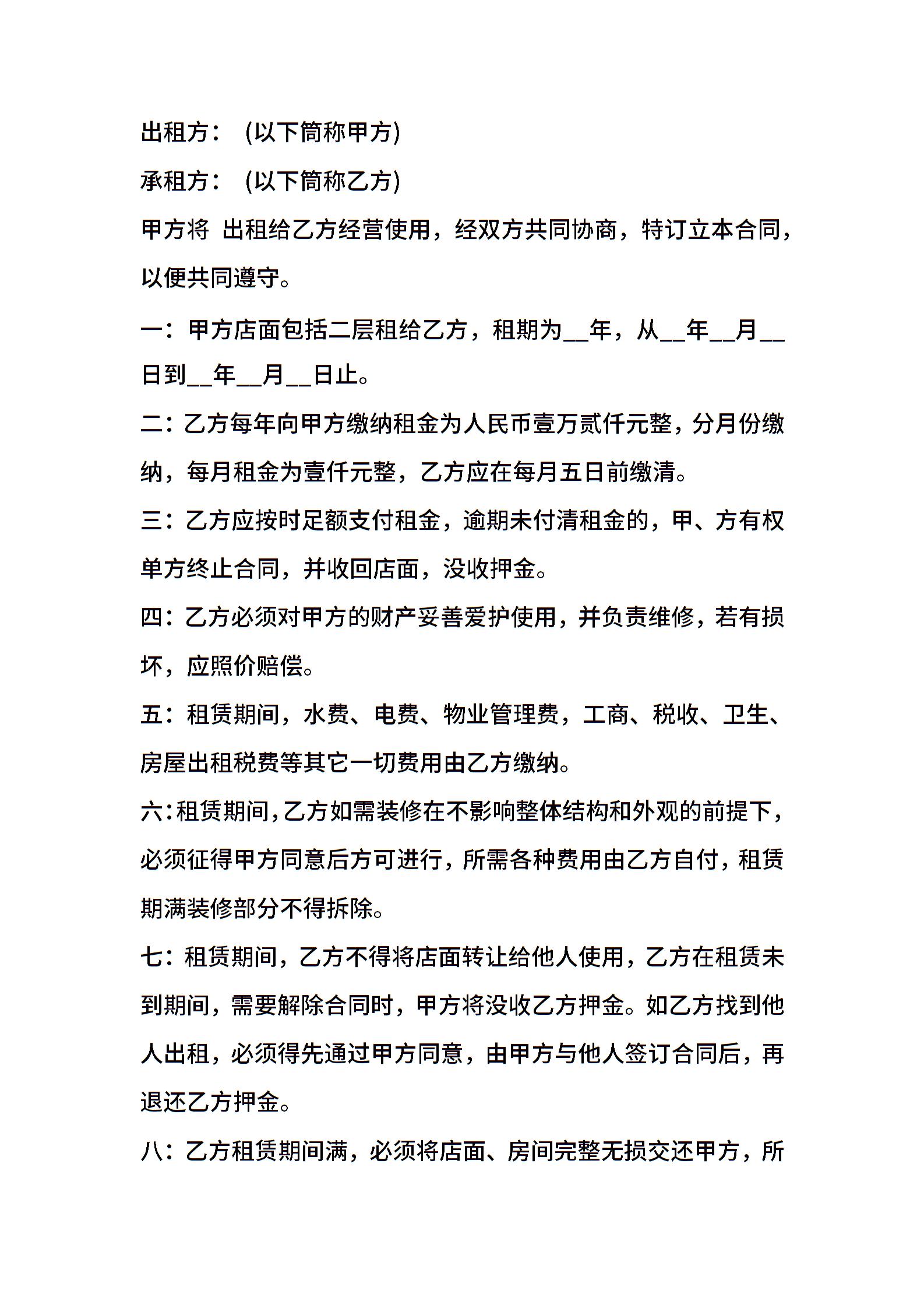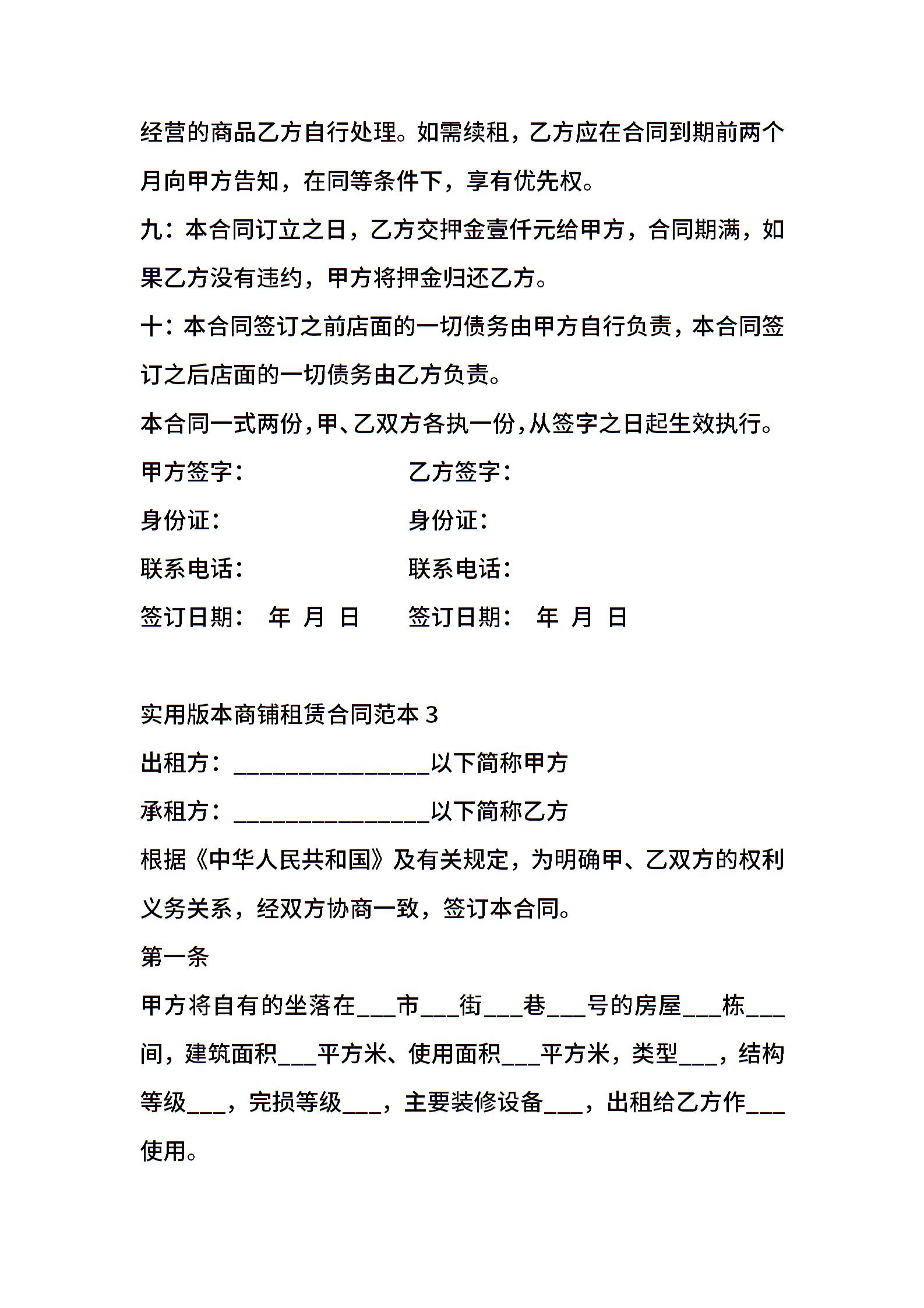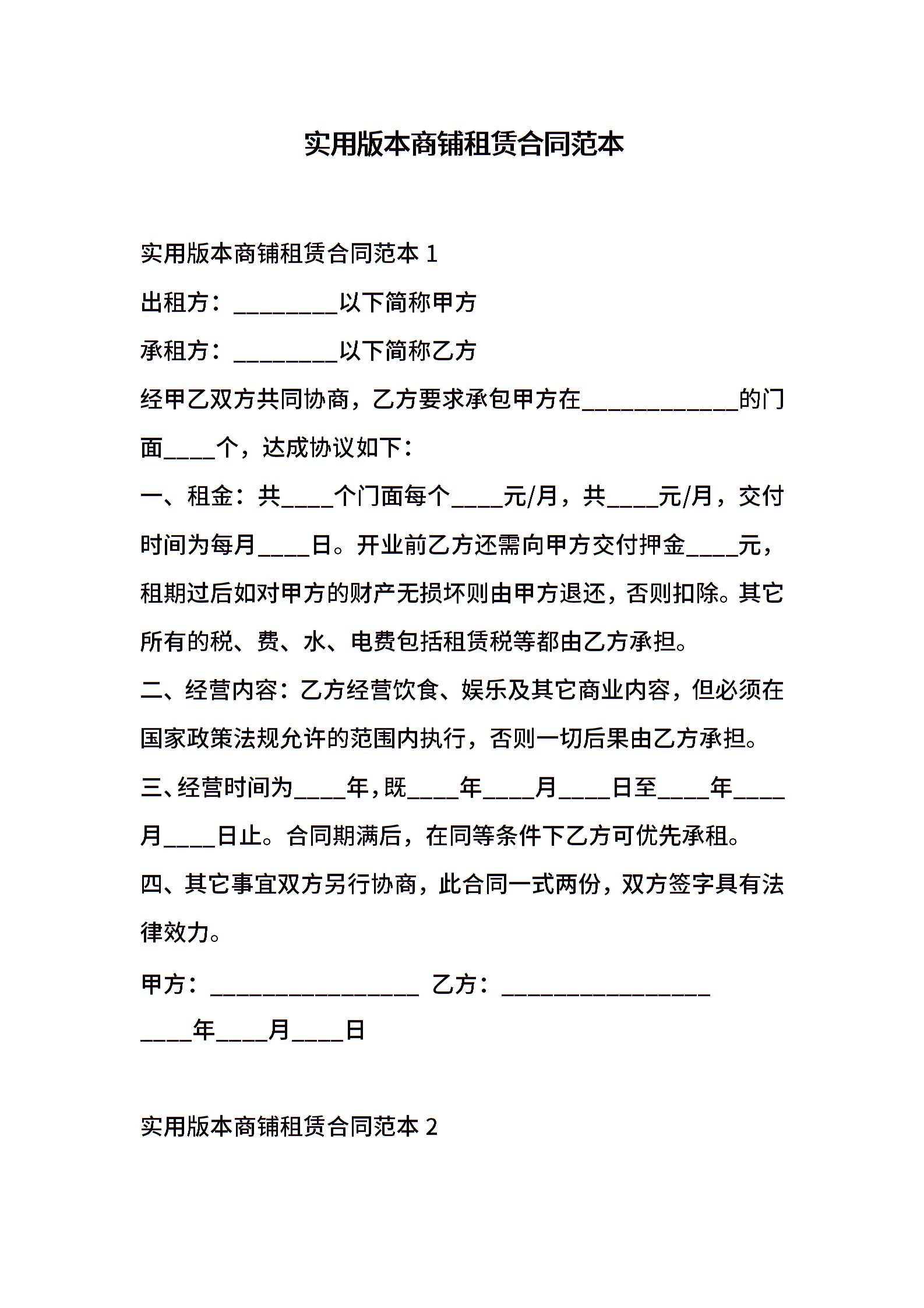 实用版本商铺租赁合同范本