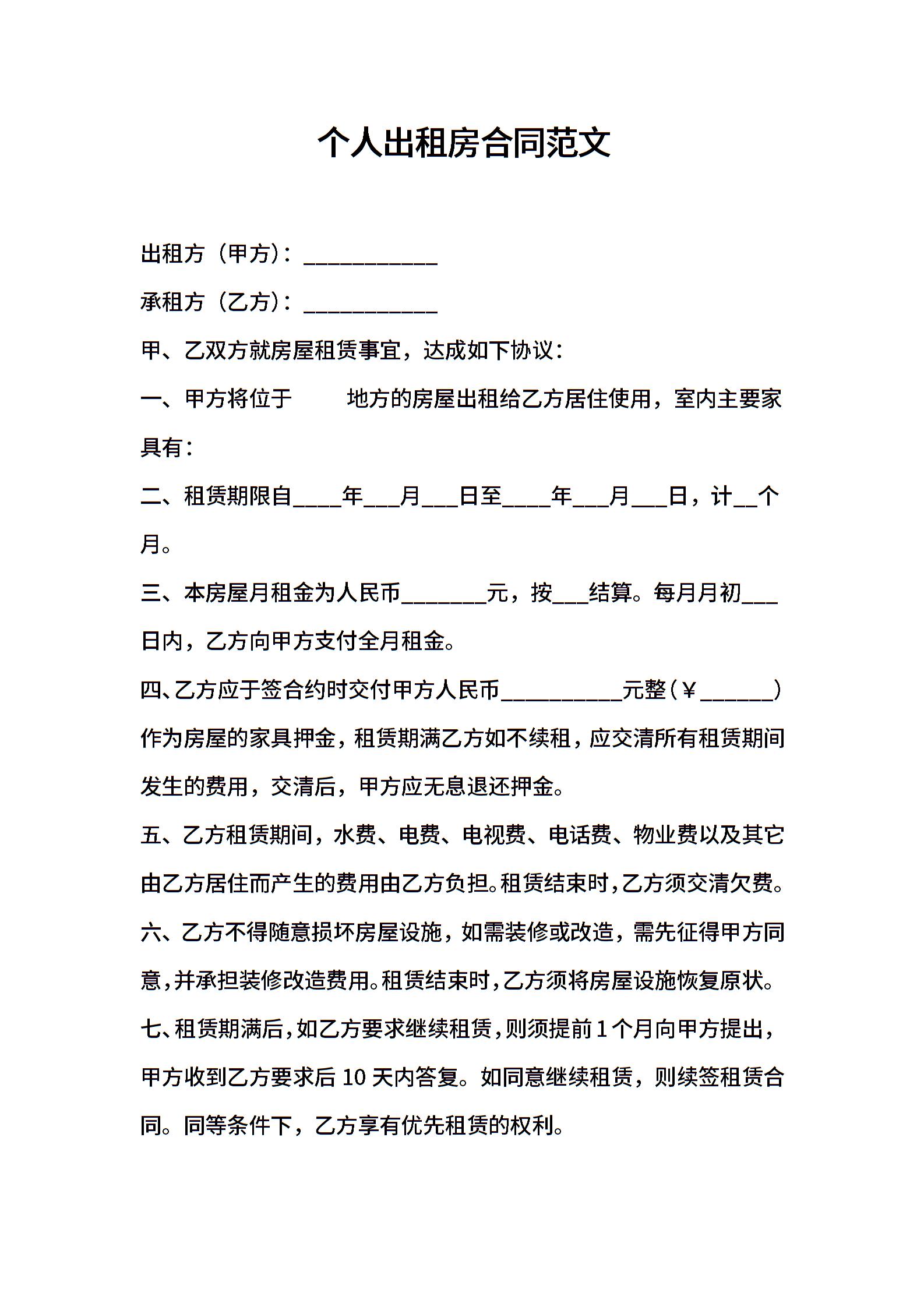 个人出租房合同范文 (2)