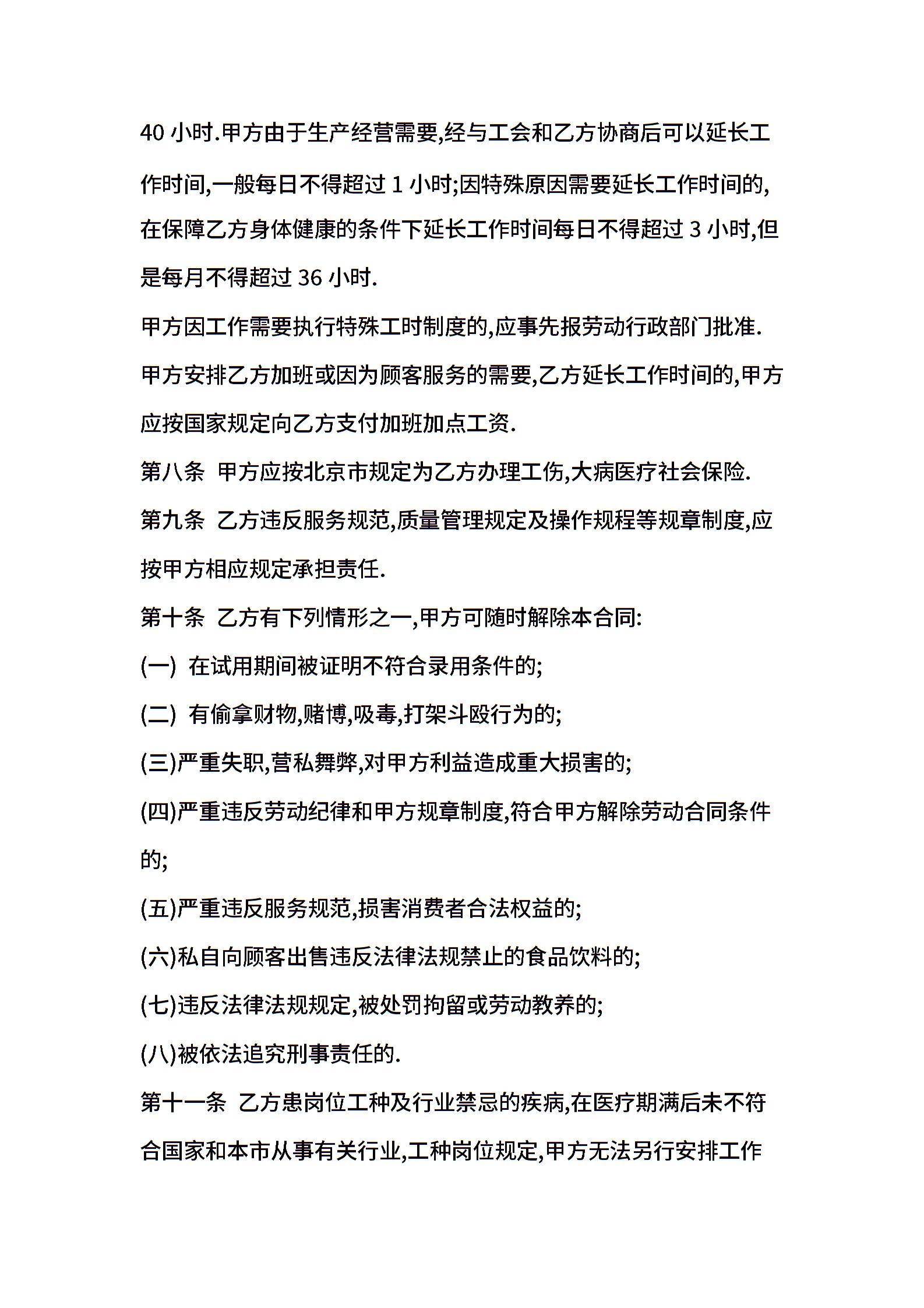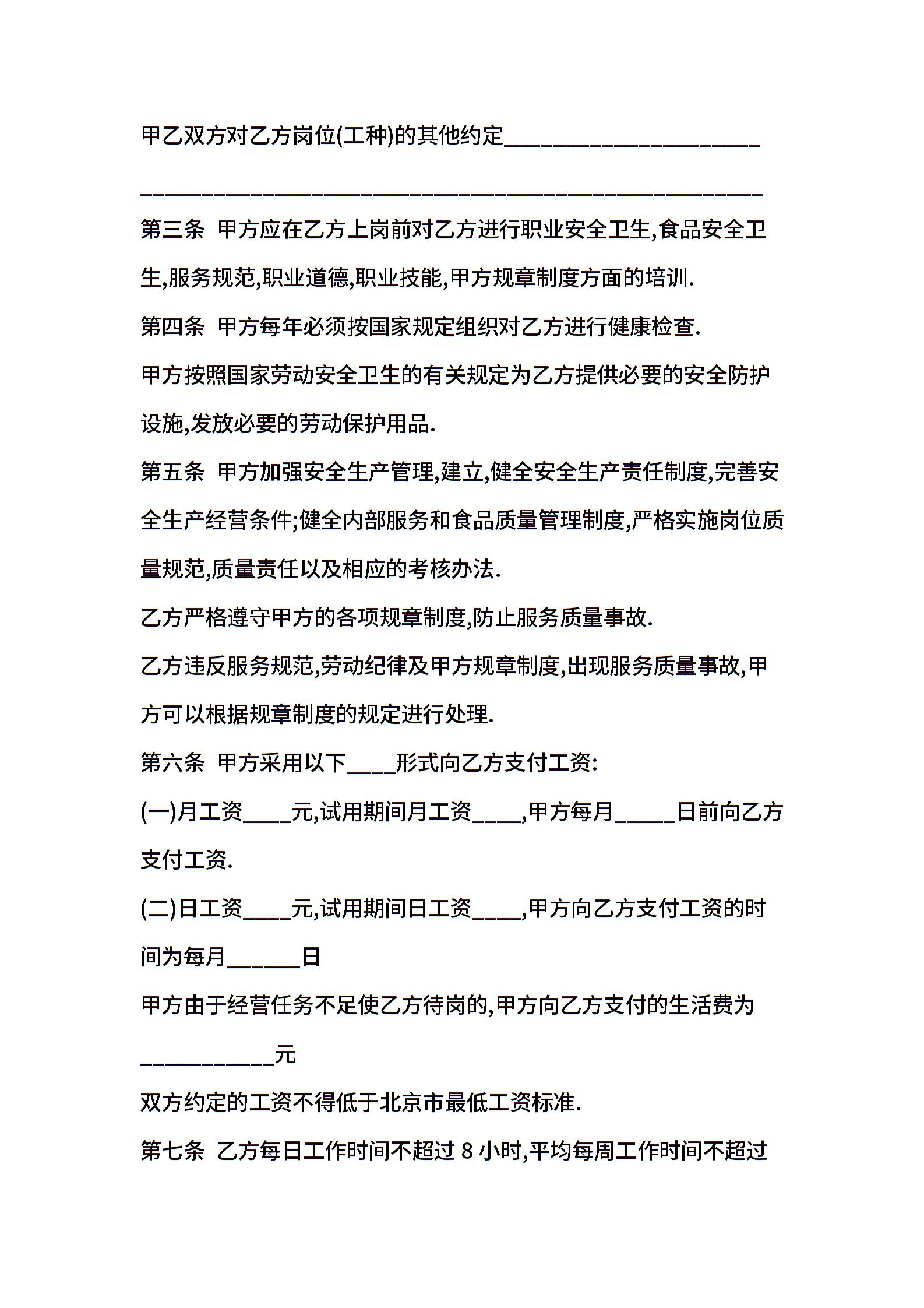 饭店劳务合同范本