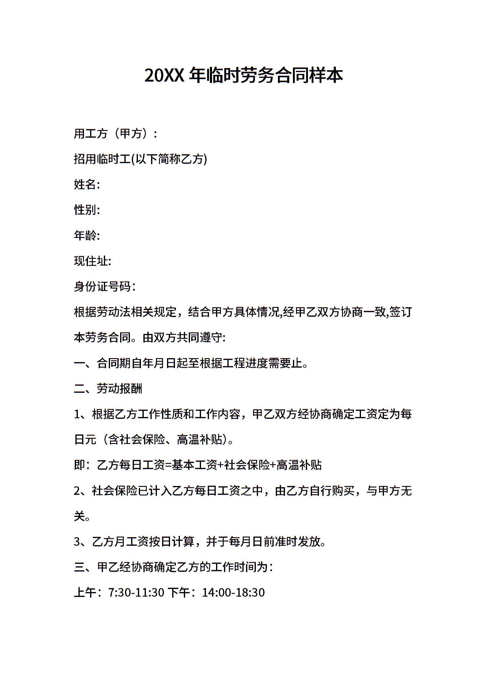 当前位置:量子办公 > 合同模板 > 劳务合同 >