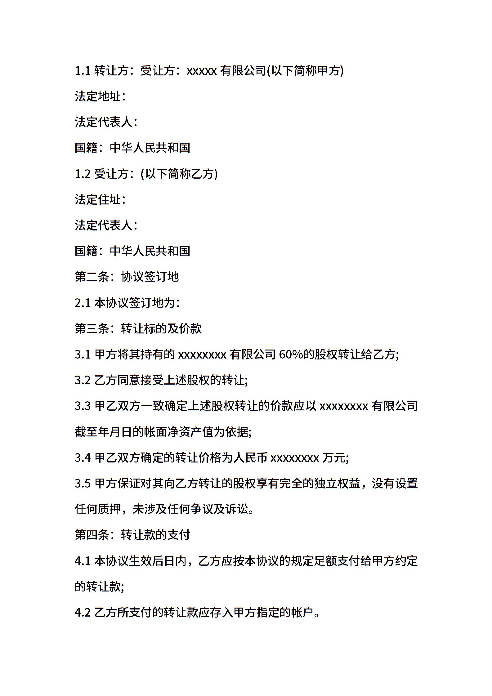 当前位置:量子办公 > 合同模板 > 股权转让协议 >