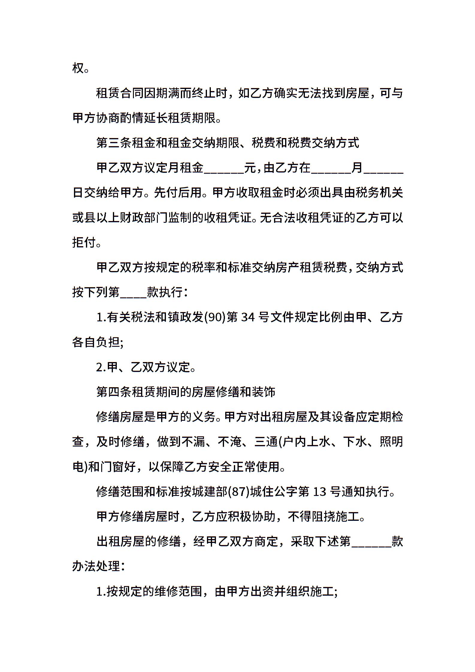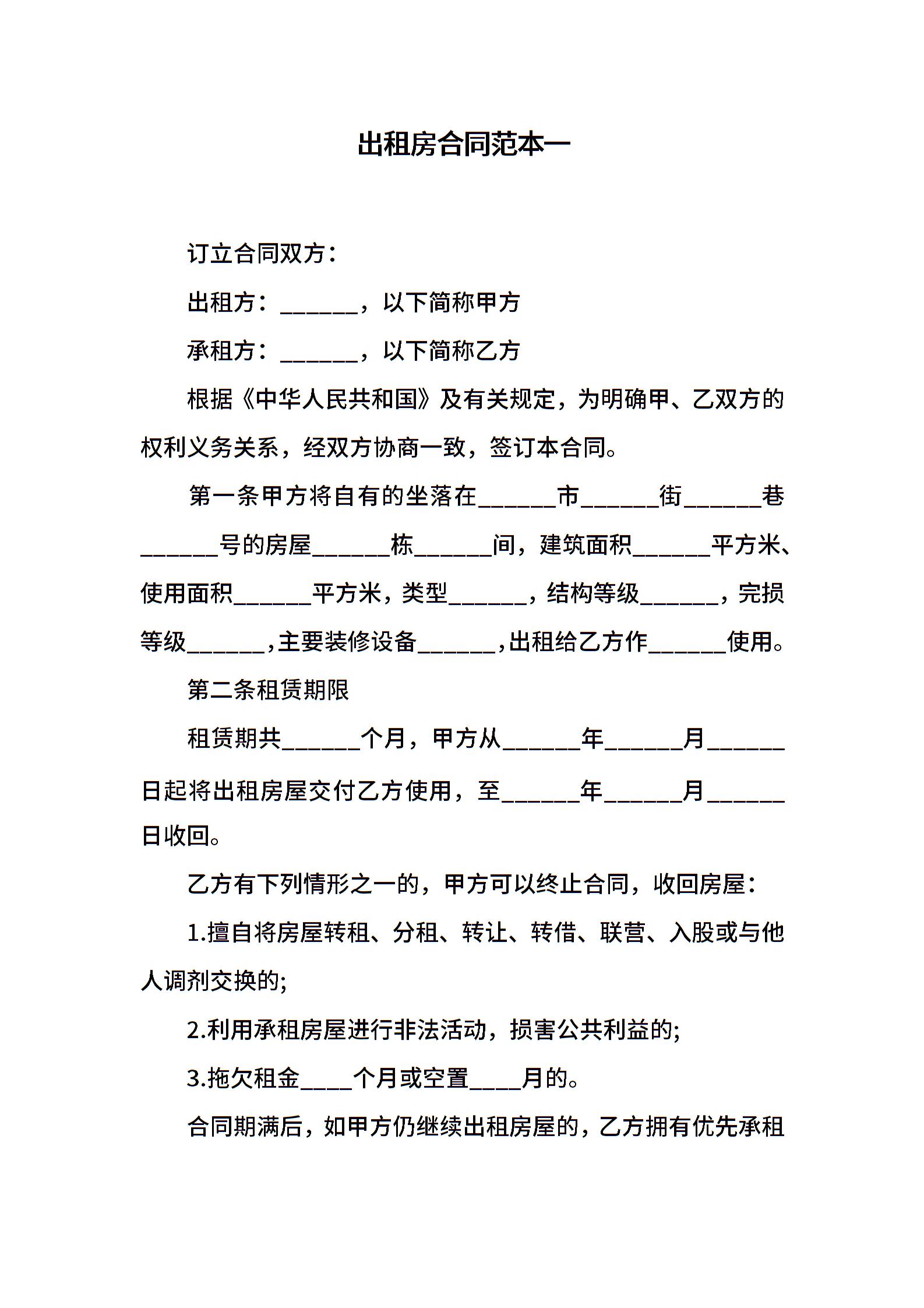 出租房合同范本一