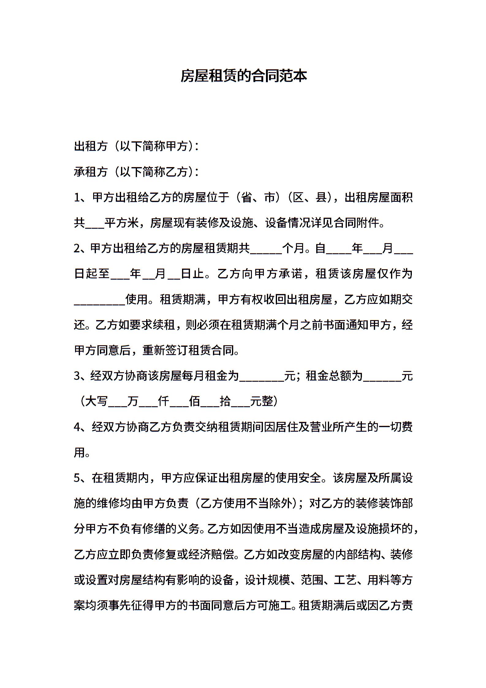 房屋租赁的合同范本