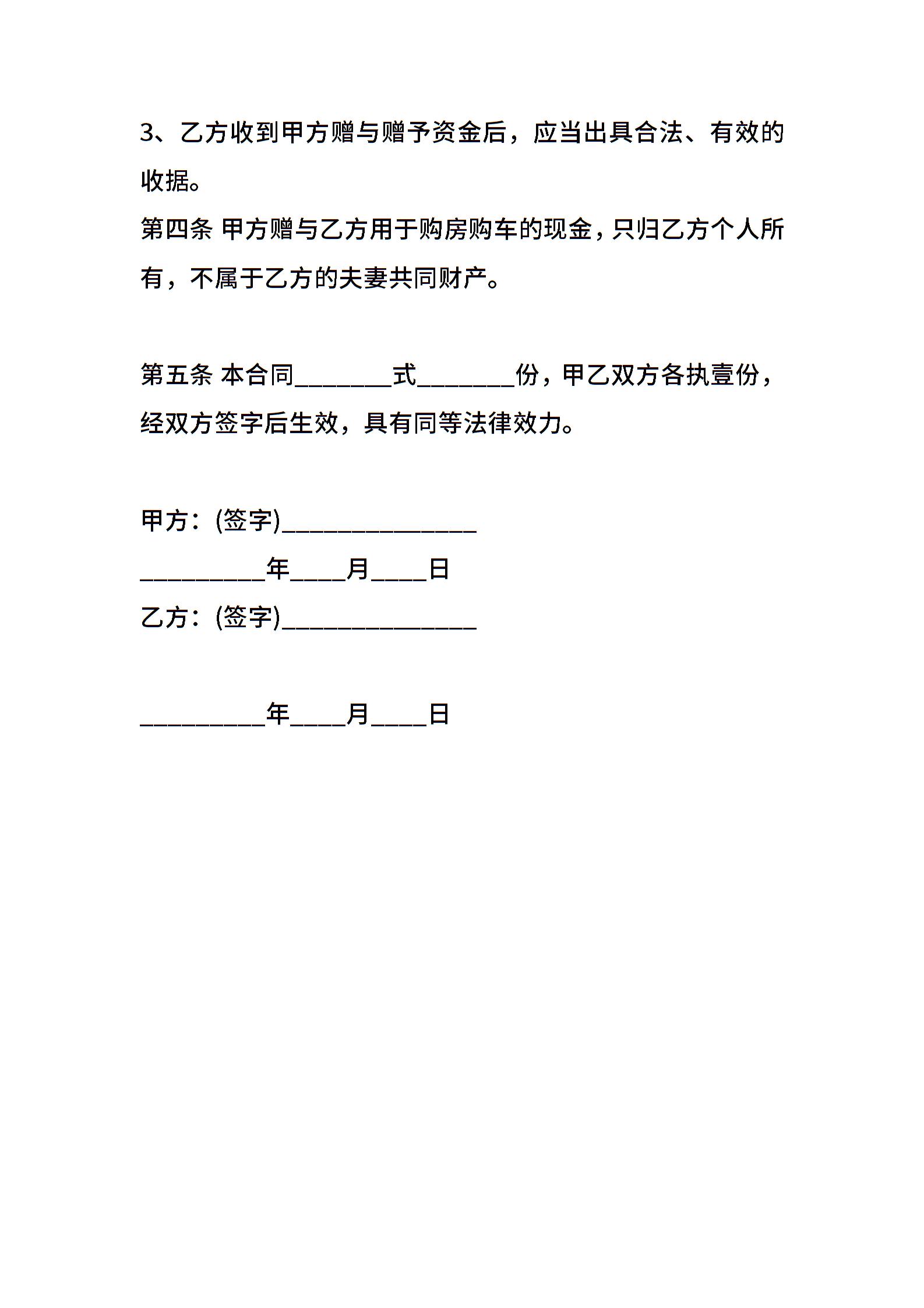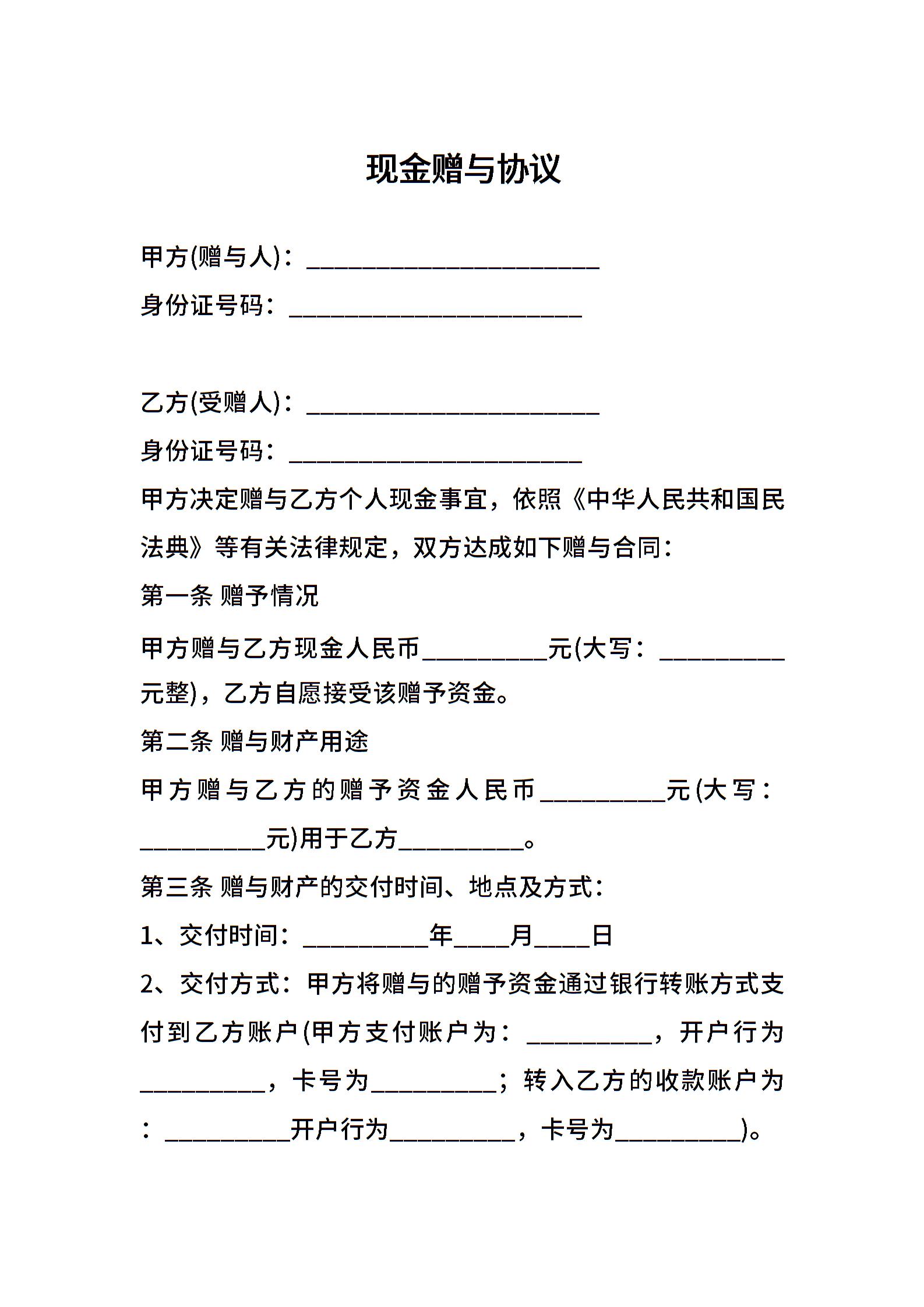 现金赠与协议