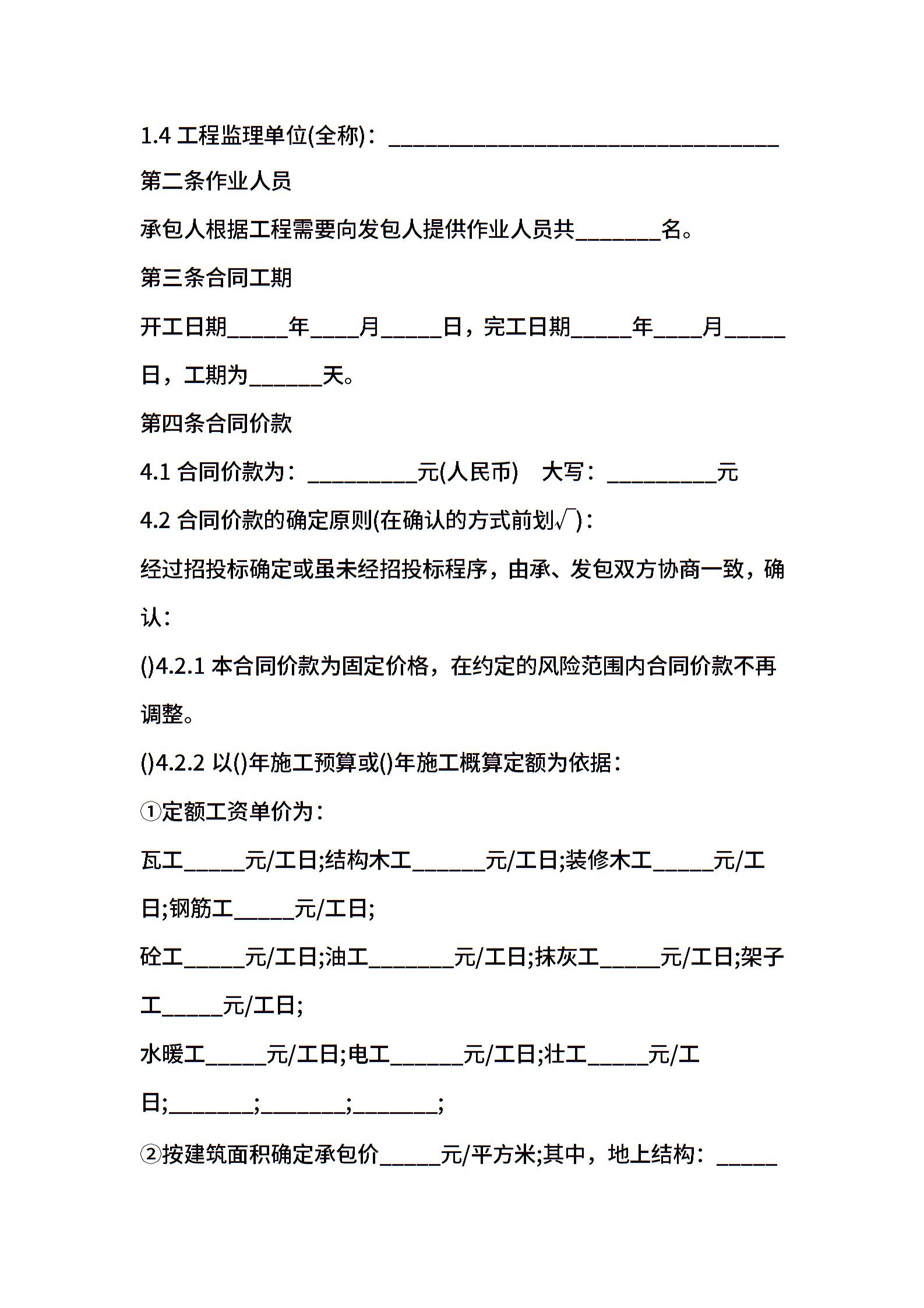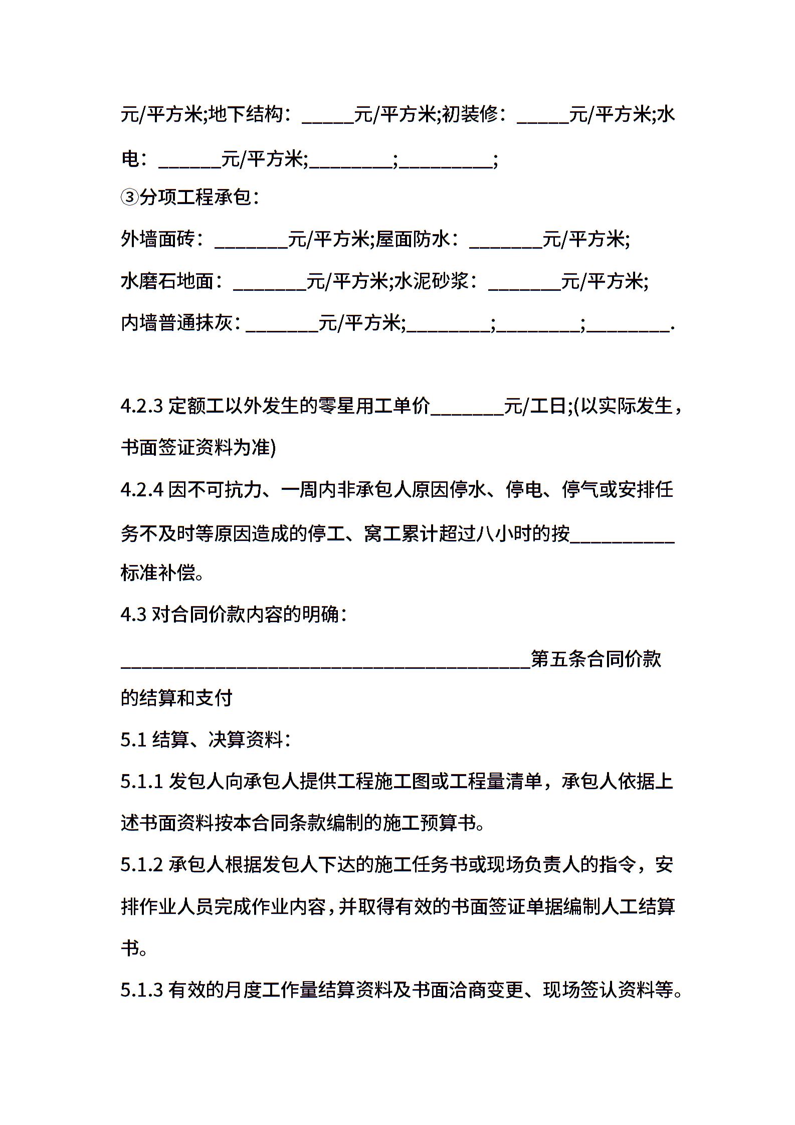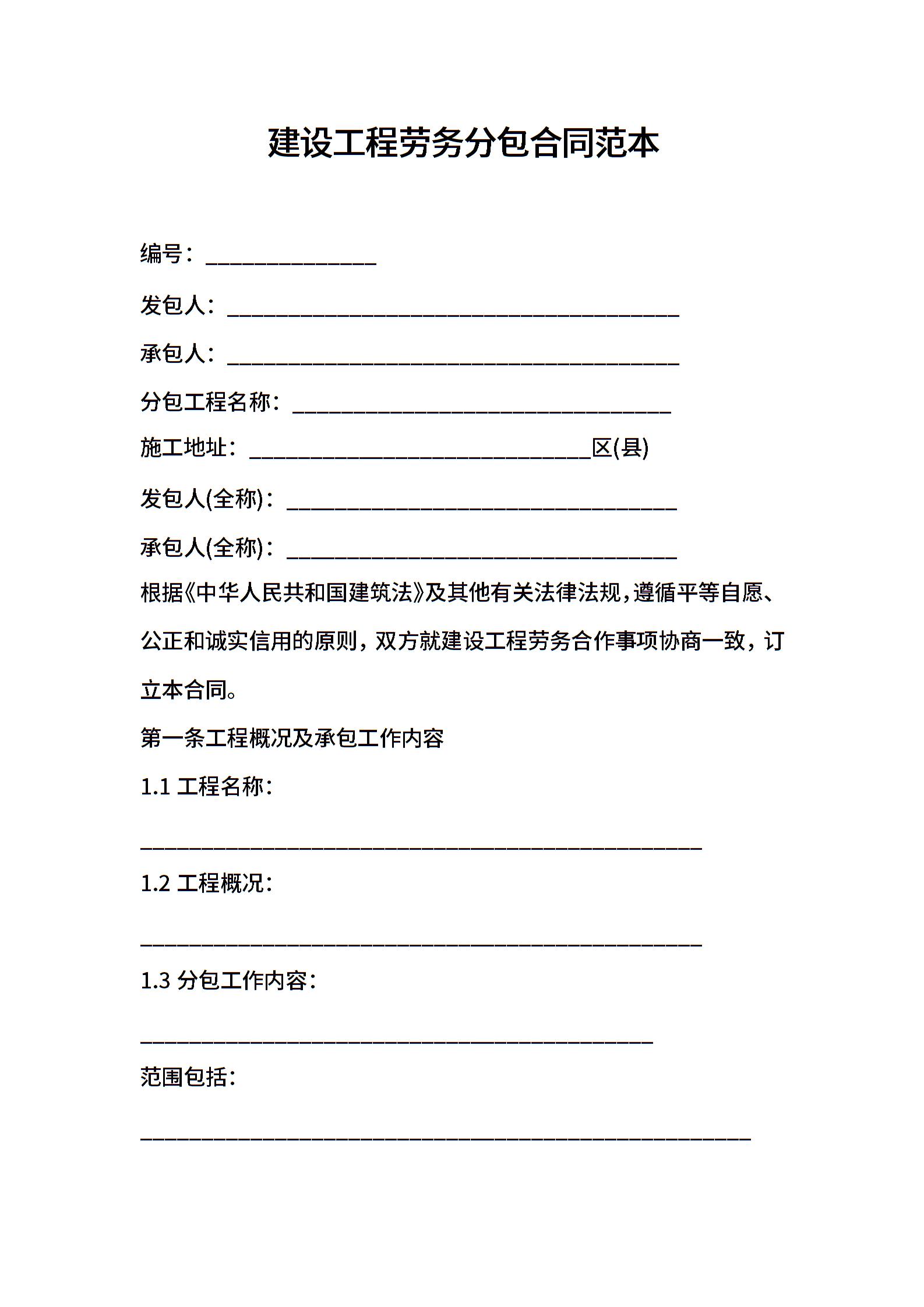 建设工程劳务分包合同范本