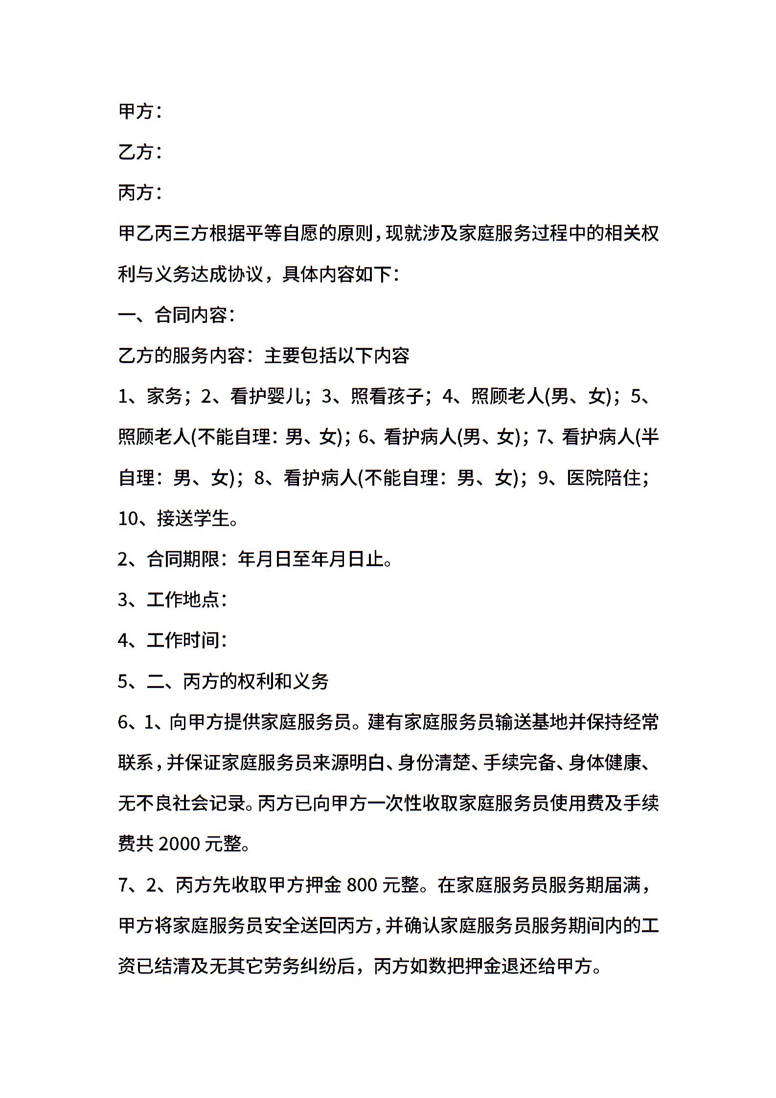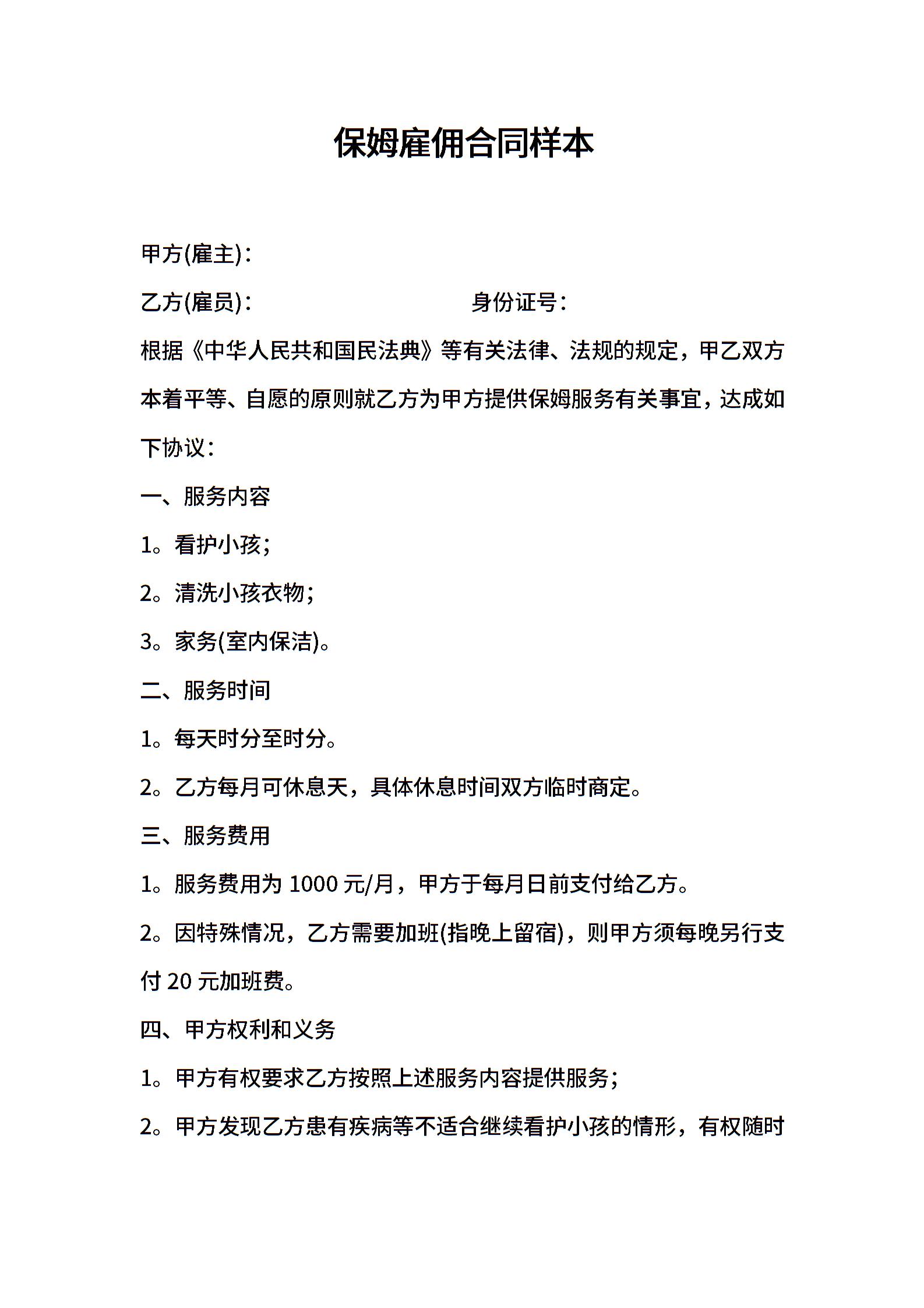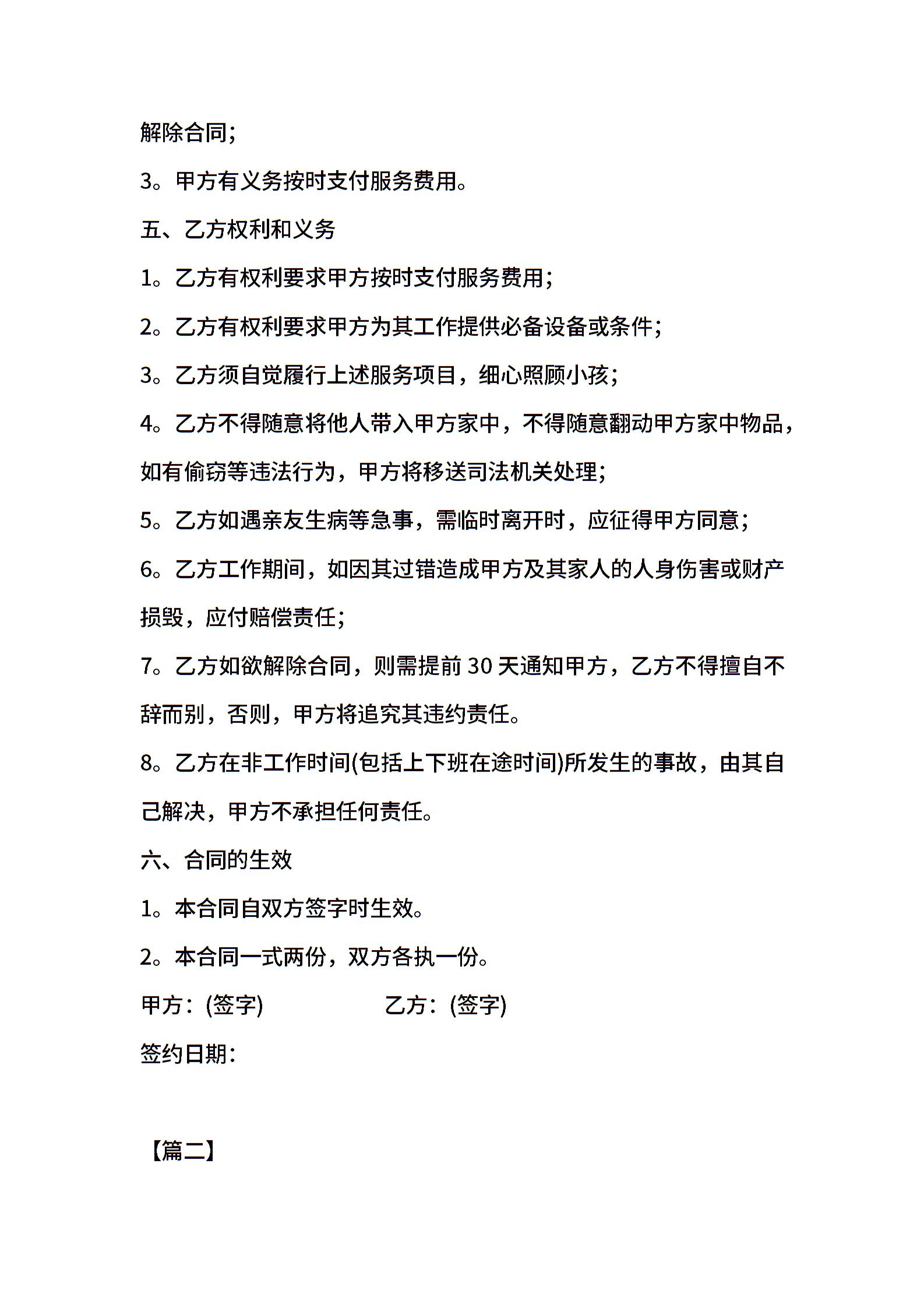 • 分类 保姆合同