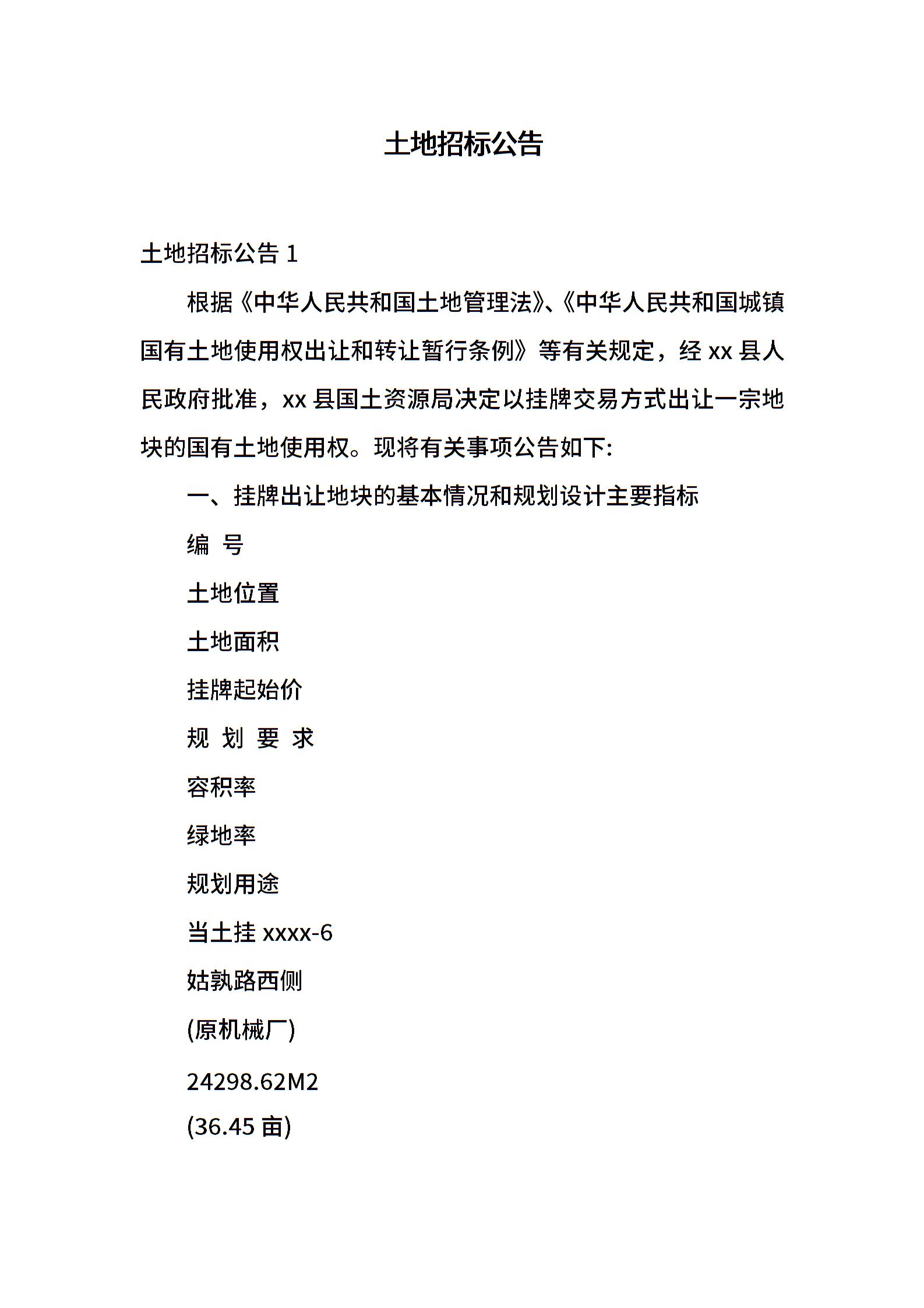 土地招标公告