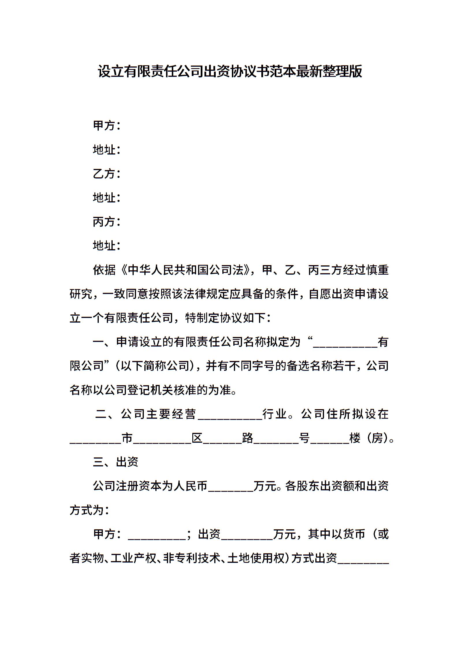 当前位置:量子办公 > 合同模板 > 出资协议 >