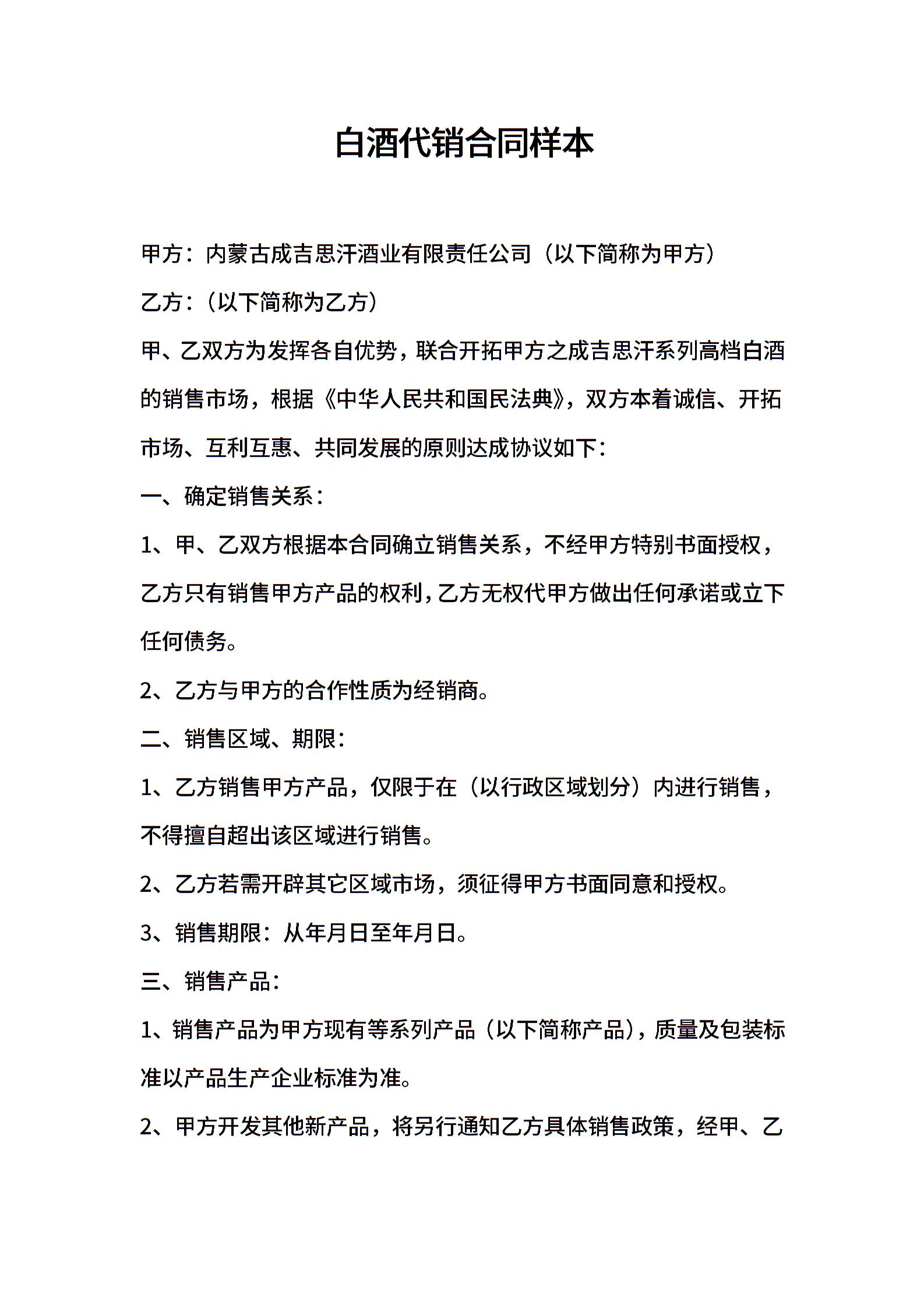 2021年白酒代销合同样本